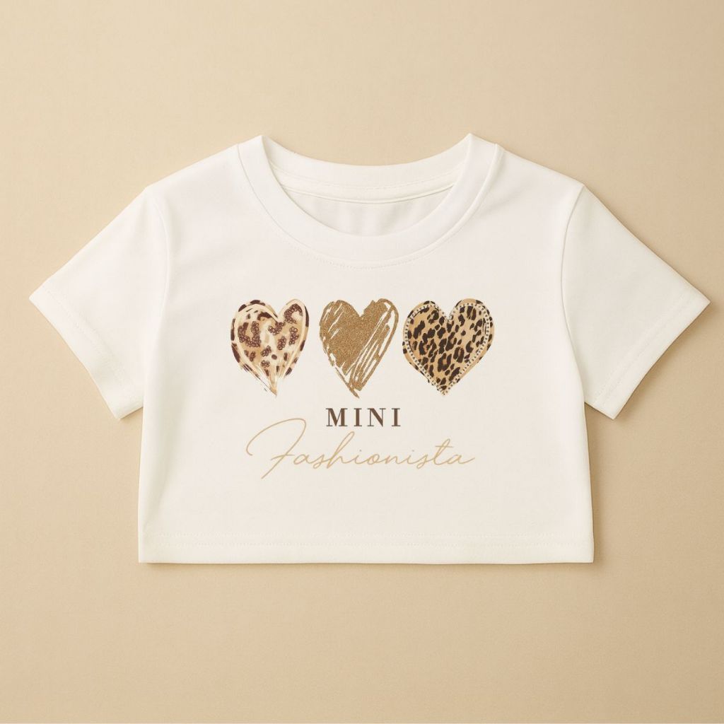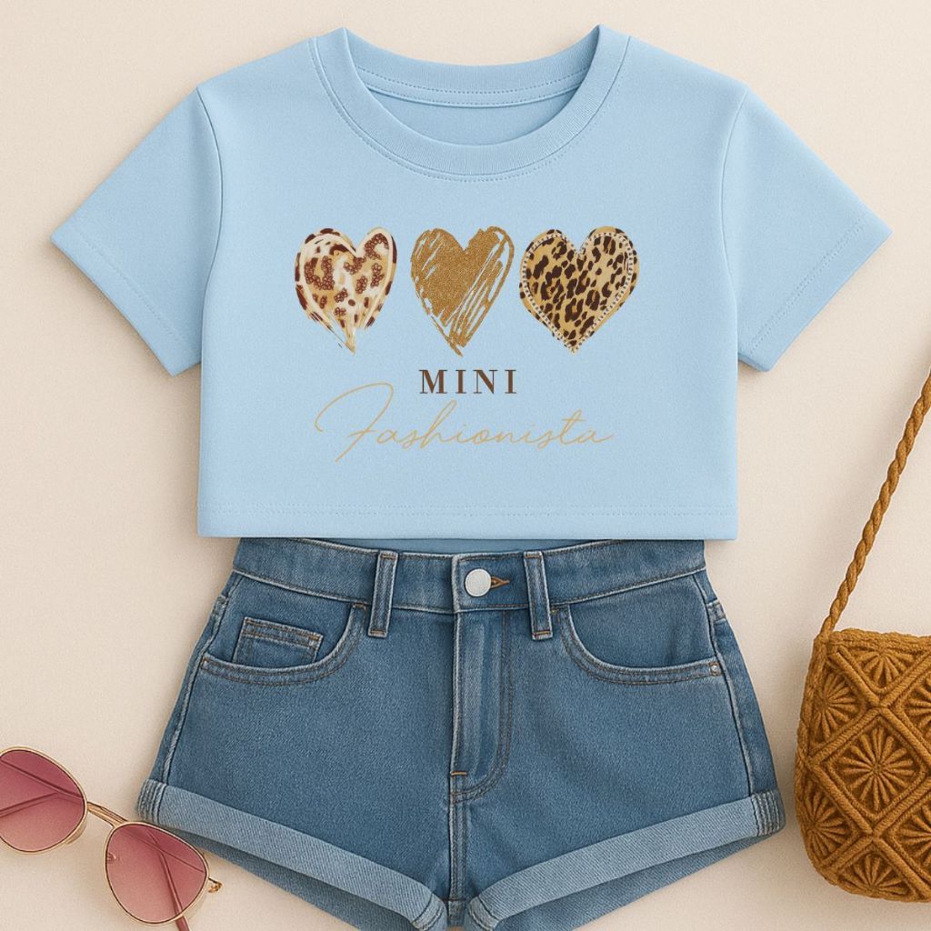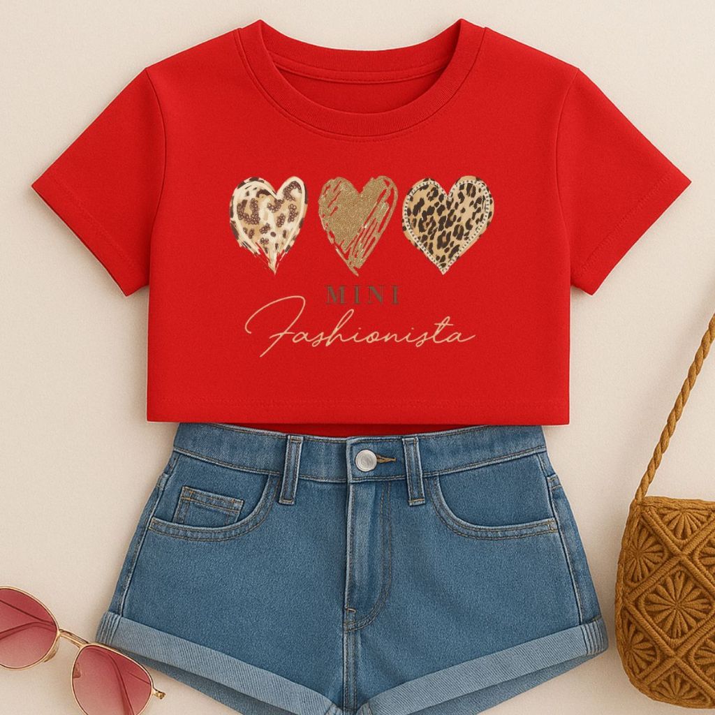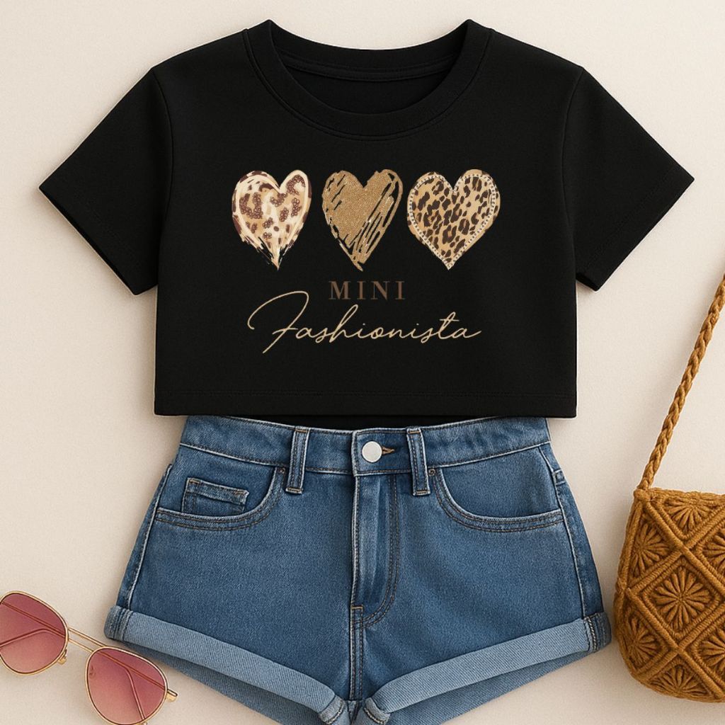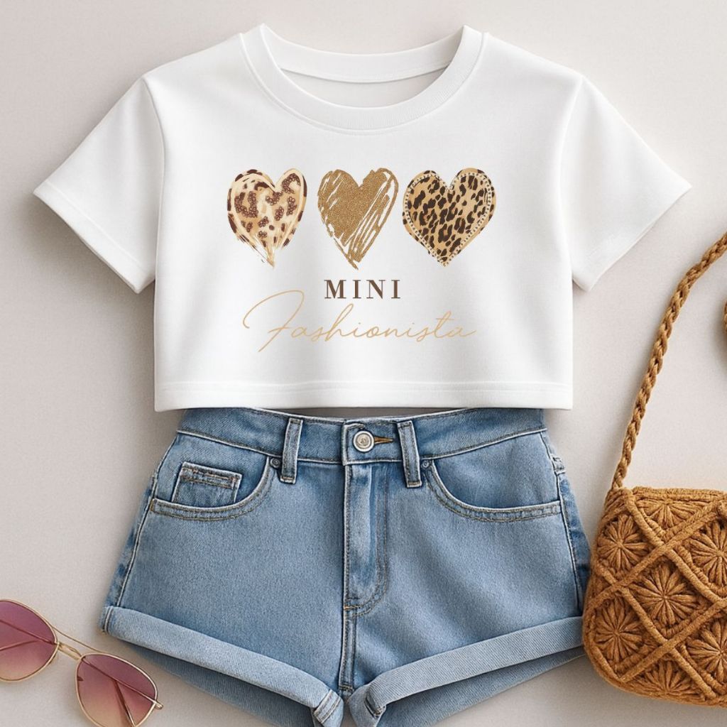 Cropped Infantil E Juvenil Estampa De Corações Animal Print Mini Fashionista Oversized Menina Verão