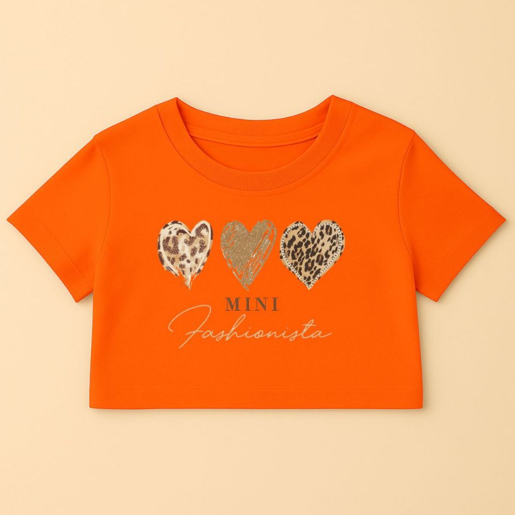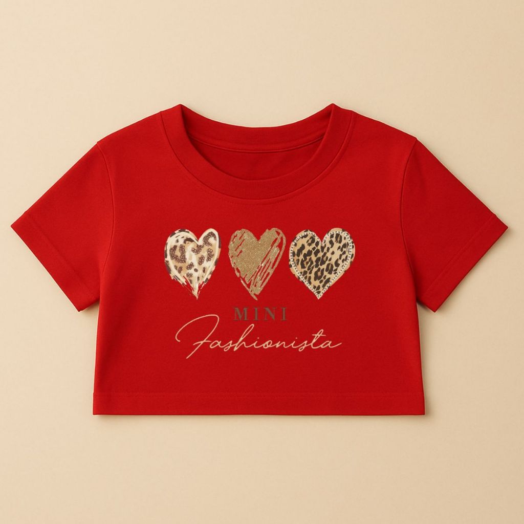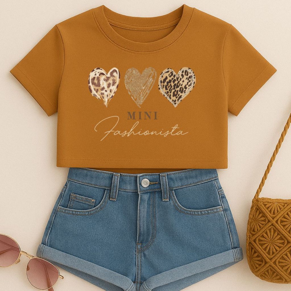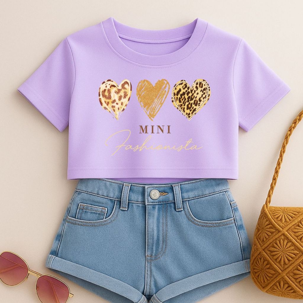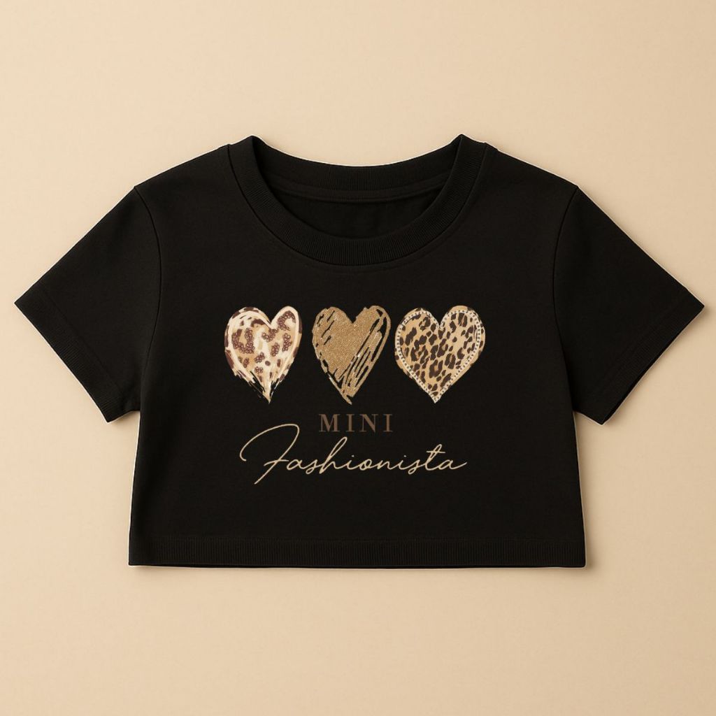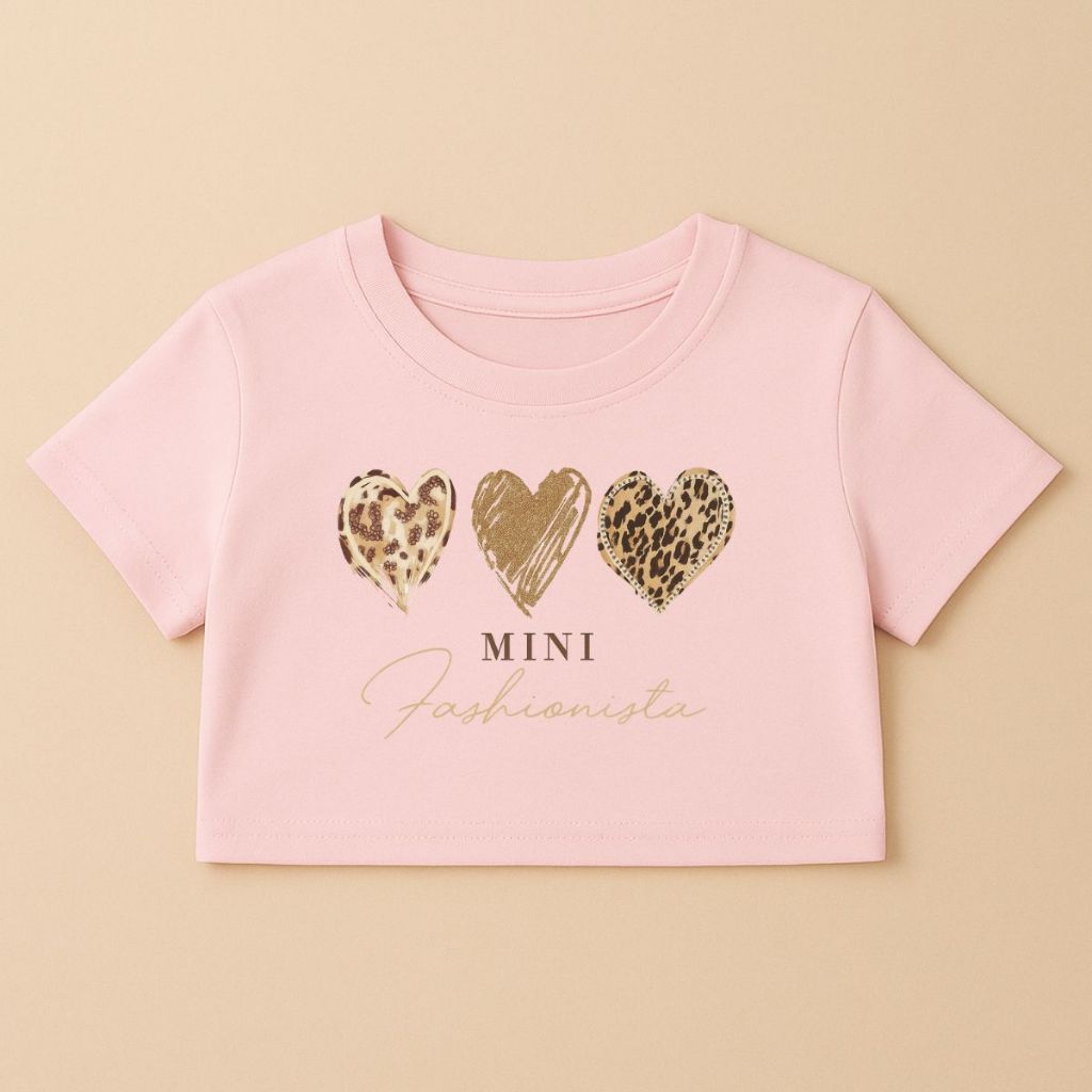 Cropped Infantil E Juvenil Estampa De Corações Animal Print Mini Fashionista Oversized Menina Verão