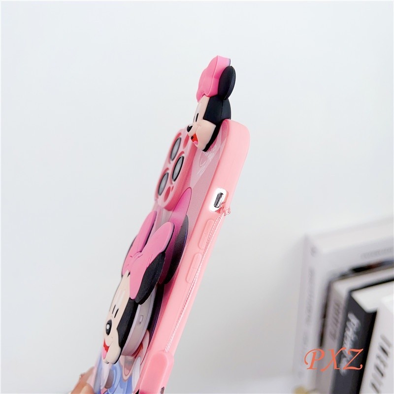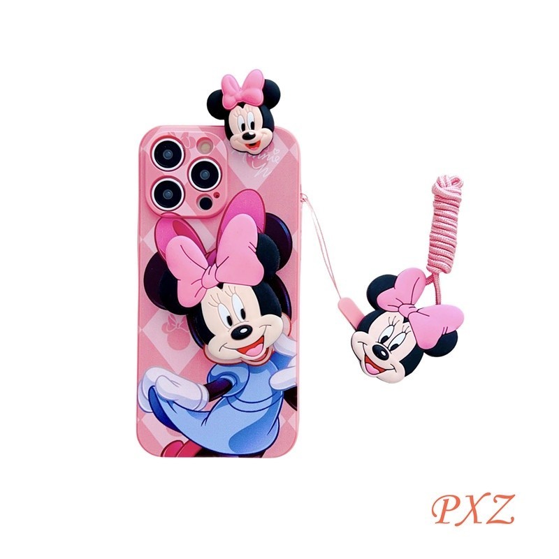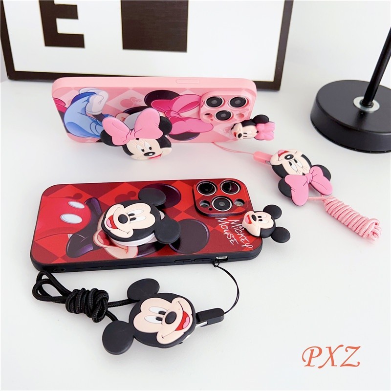 Invólucro Para Samsung A07 A17 A06 A16 5G Dos Desenhos Animados Bonito Minnie Mickey Com Cordão Capa Macia Caso De Telef