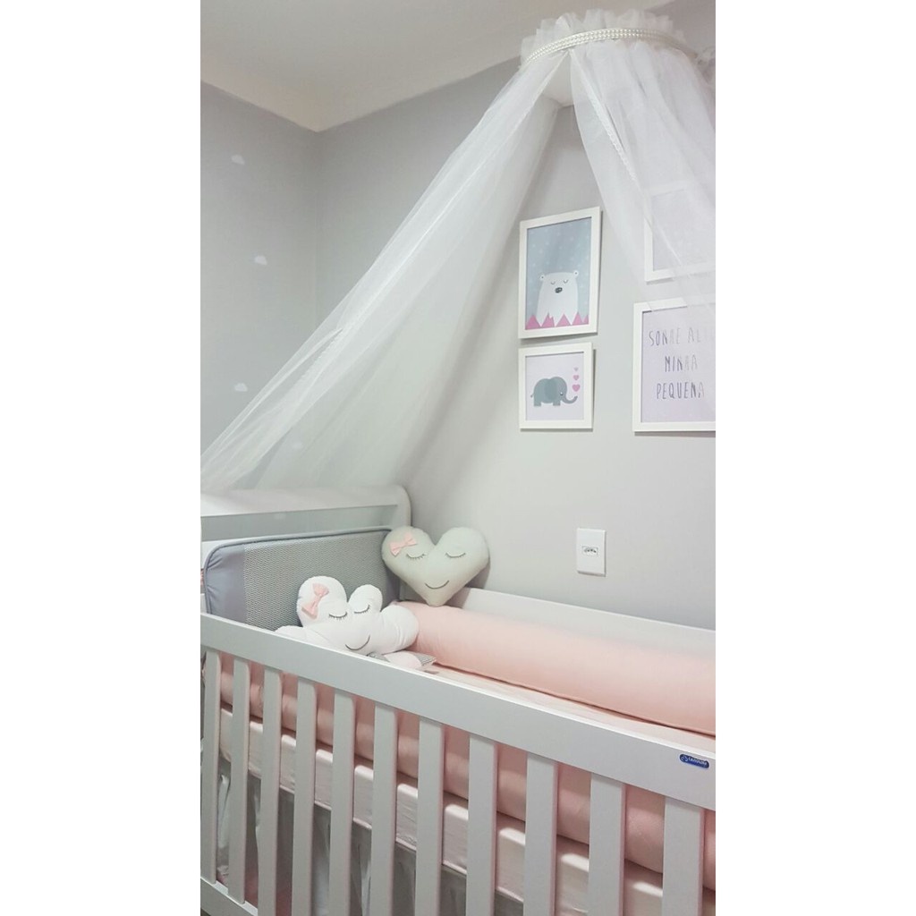 Kit Dossél completo com Veu Incluso Branco com Perolas Quarto de Bebê Menina Menino Conjunto Dossél De berço 2p