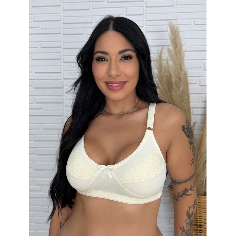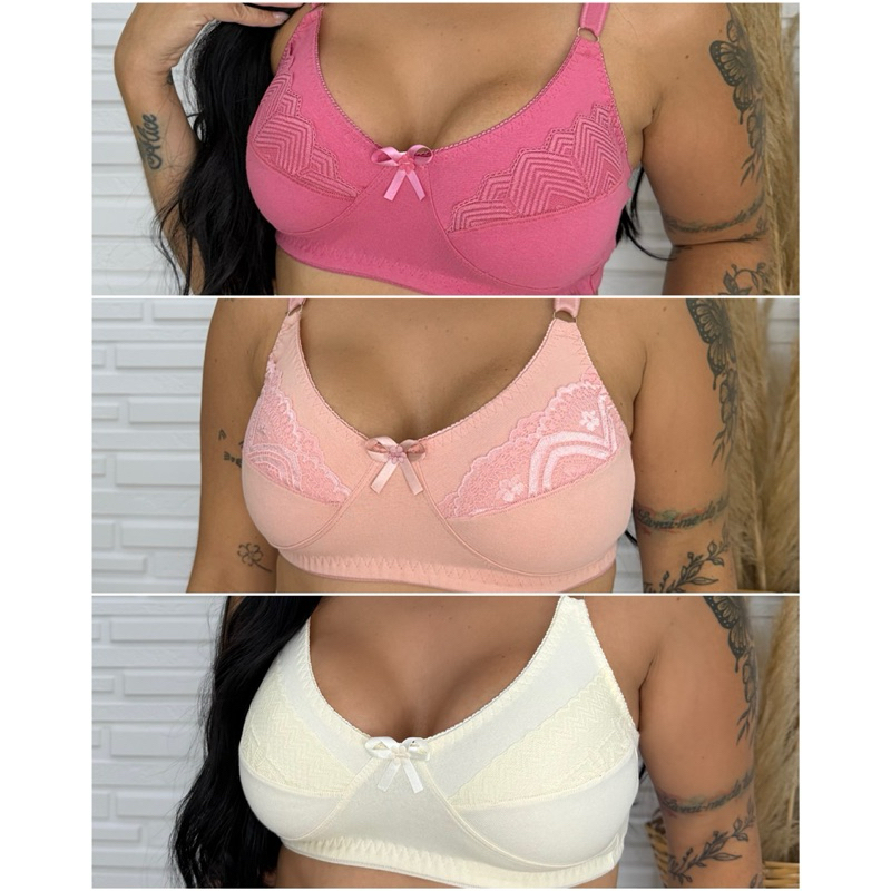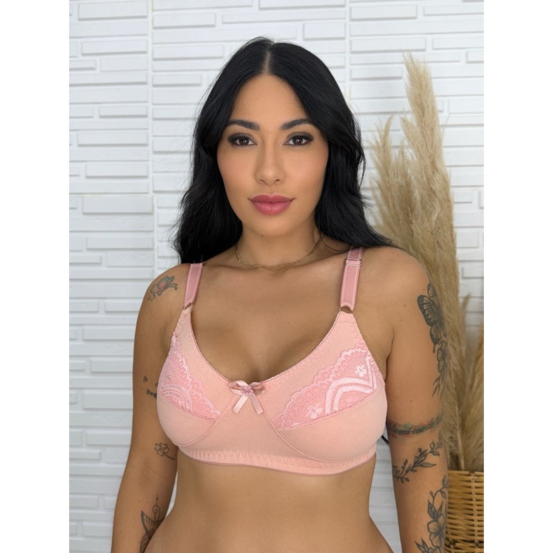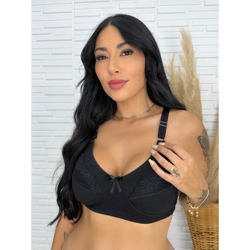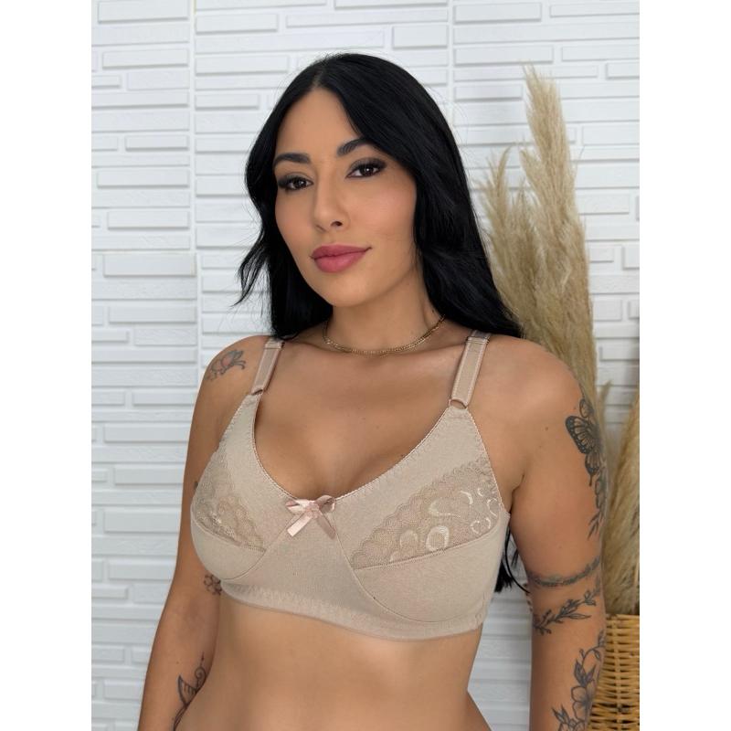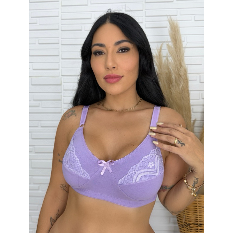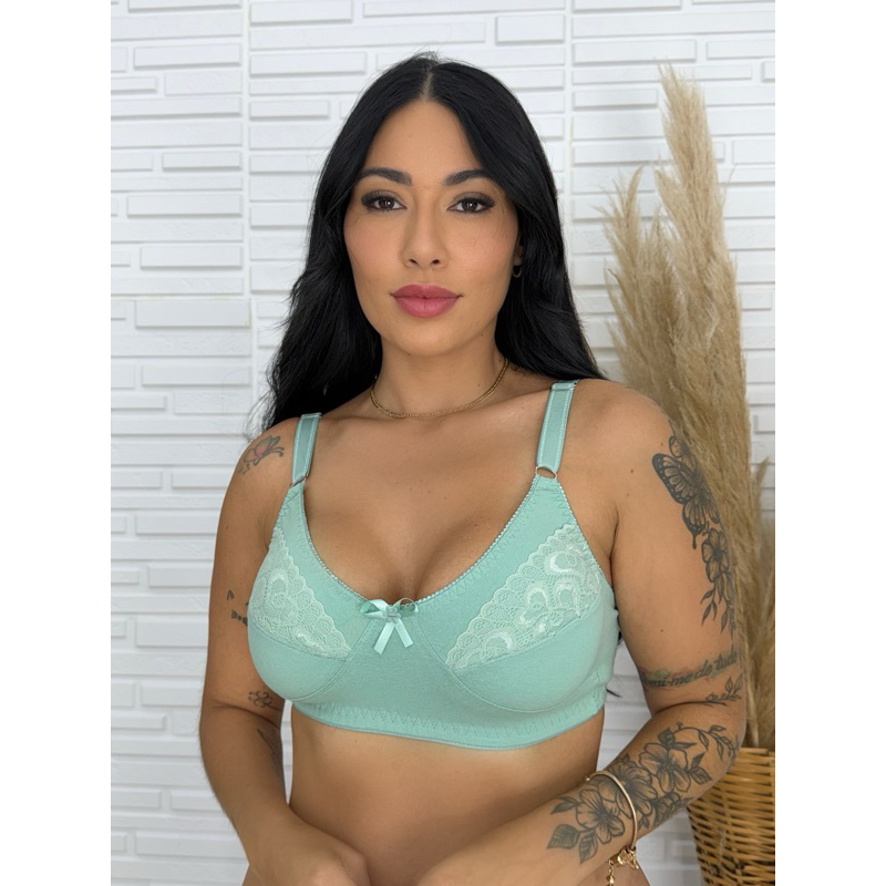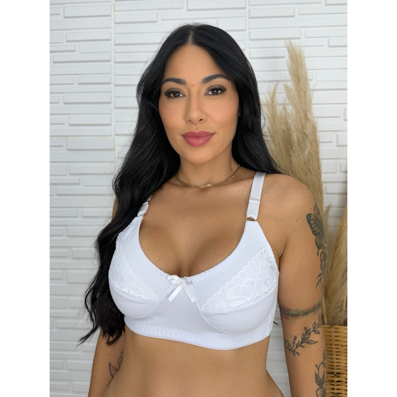 Sutiã Algodão Reforçado em Cotton Alças Largas Confotavel dia a dia Senhora Sem Aro detalhe Renda