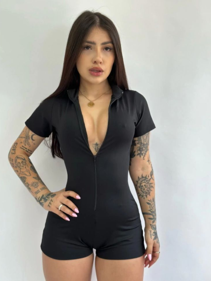 Macaquinho Feminino Academia Manga Curta Short Curto Preto Suplex