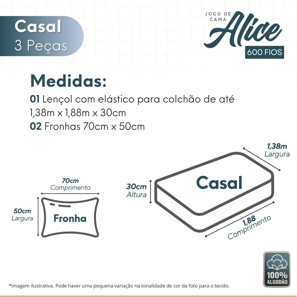 Jogo De Cama Casal Padrão 3 Pçs 600fios Egípcio Ponto Palito