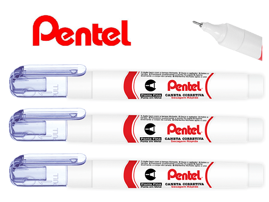 Caneta Corretiva Pentel 4,2ml Metal Pentel Kit com 3 Un.