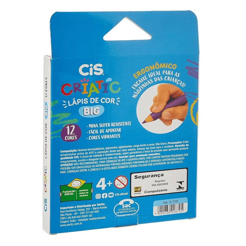 Lápis de Cor Jumbo 12 Cores c/ Apontador Cis Criatic Escolar