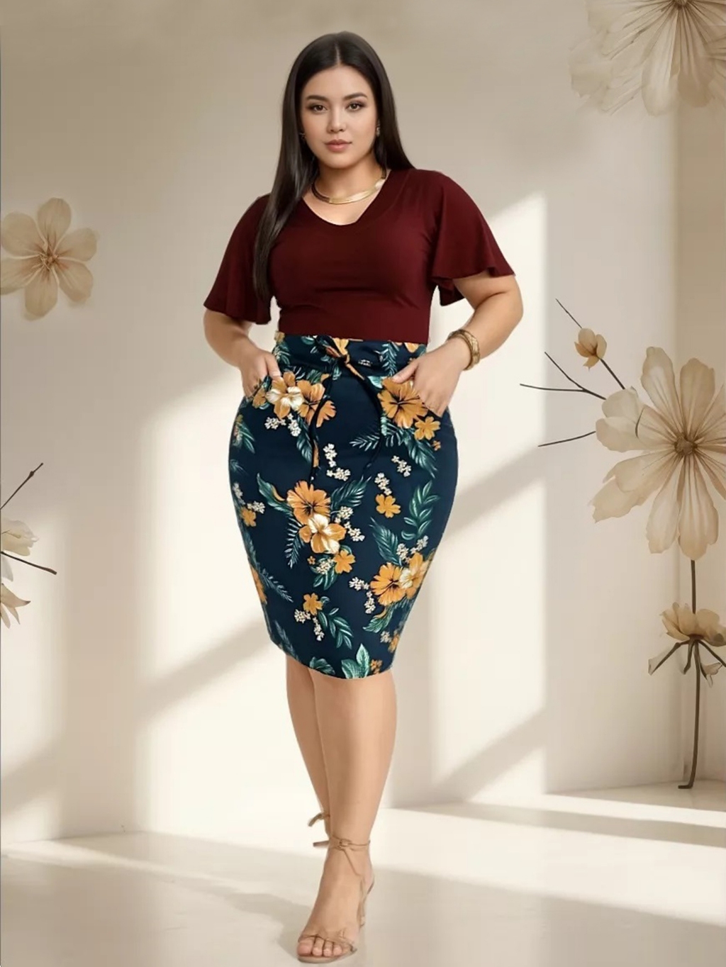 Saia Linda Cintura Alta Com Bolsos Tendência Moda Jovem Elegante Saia Lápis.