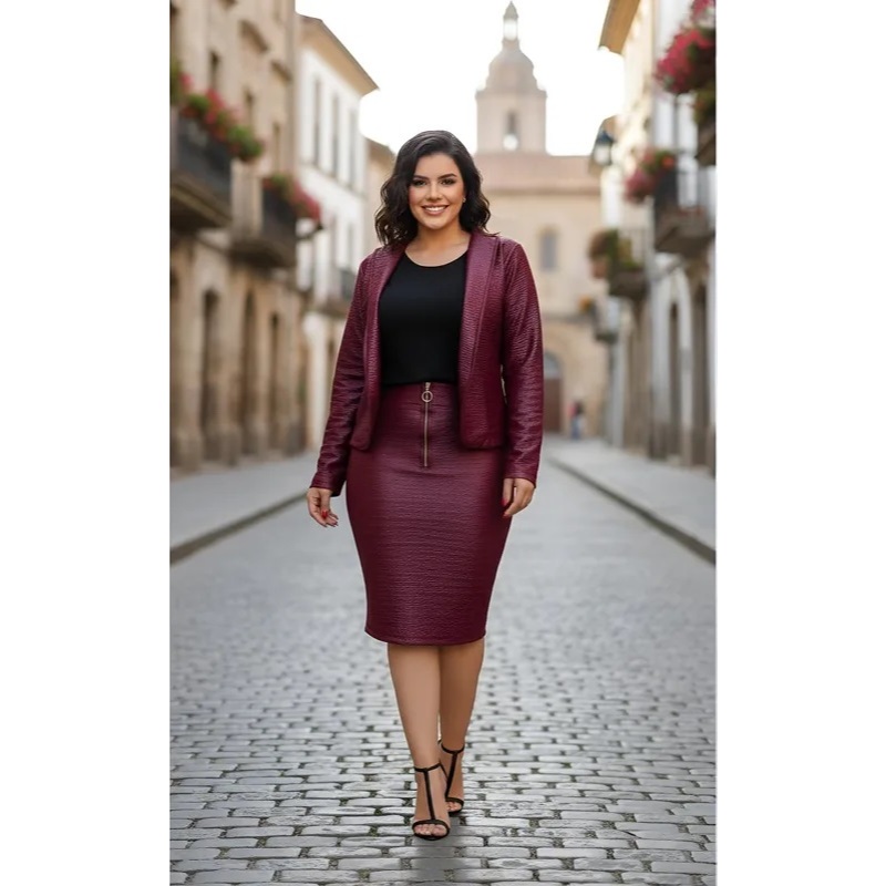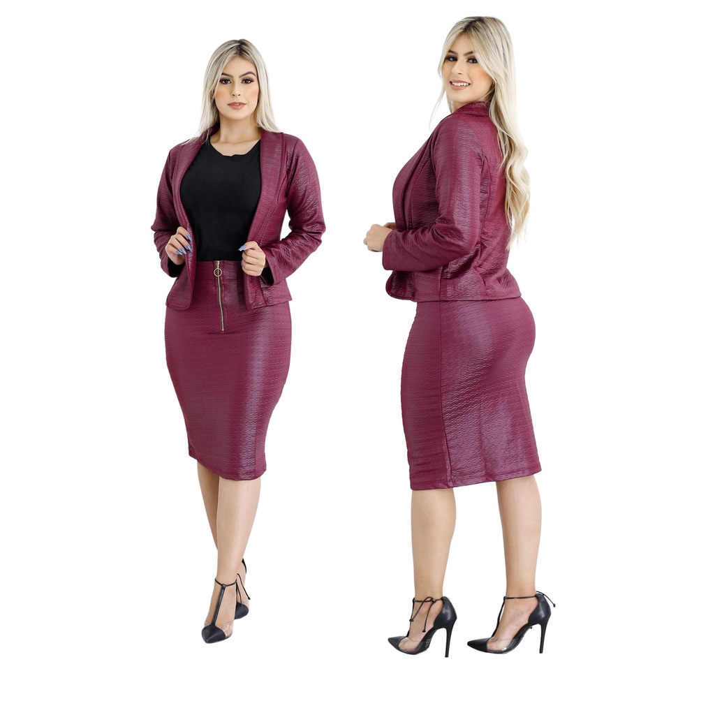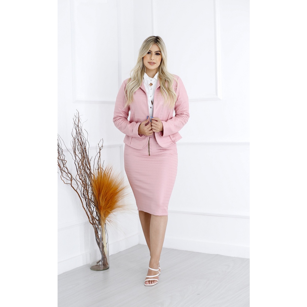 Conjunto Lindo Pra congressos Blazer Casaco e Saia Midi Lápis Cintura Alta Moda evangélica Feminina