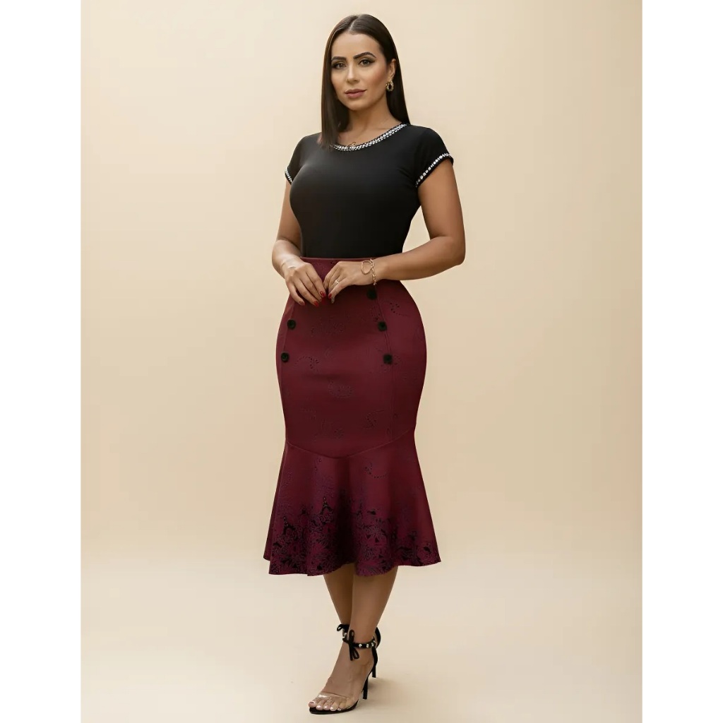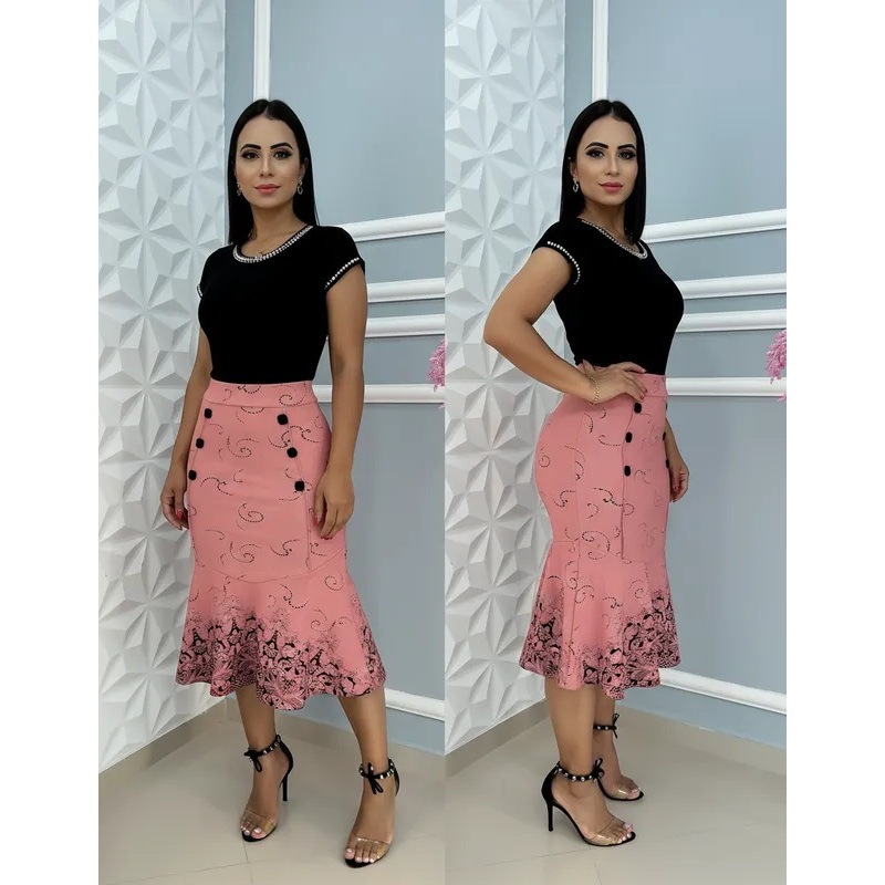 Saia Midi Casual Moda Evangélica social Detalhes com Botões