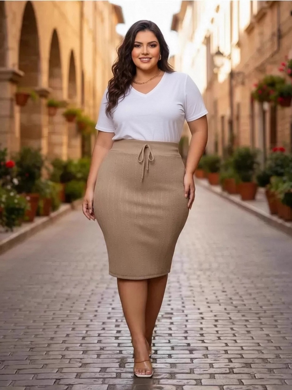 Saia Lápis Casual de bolso Midi Moda Plus Com Elastano.
