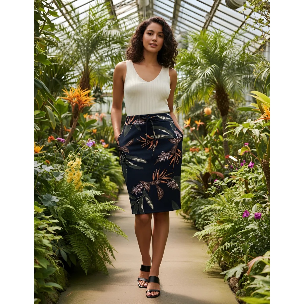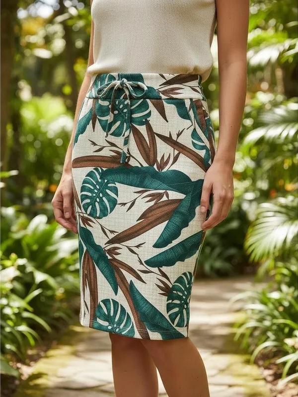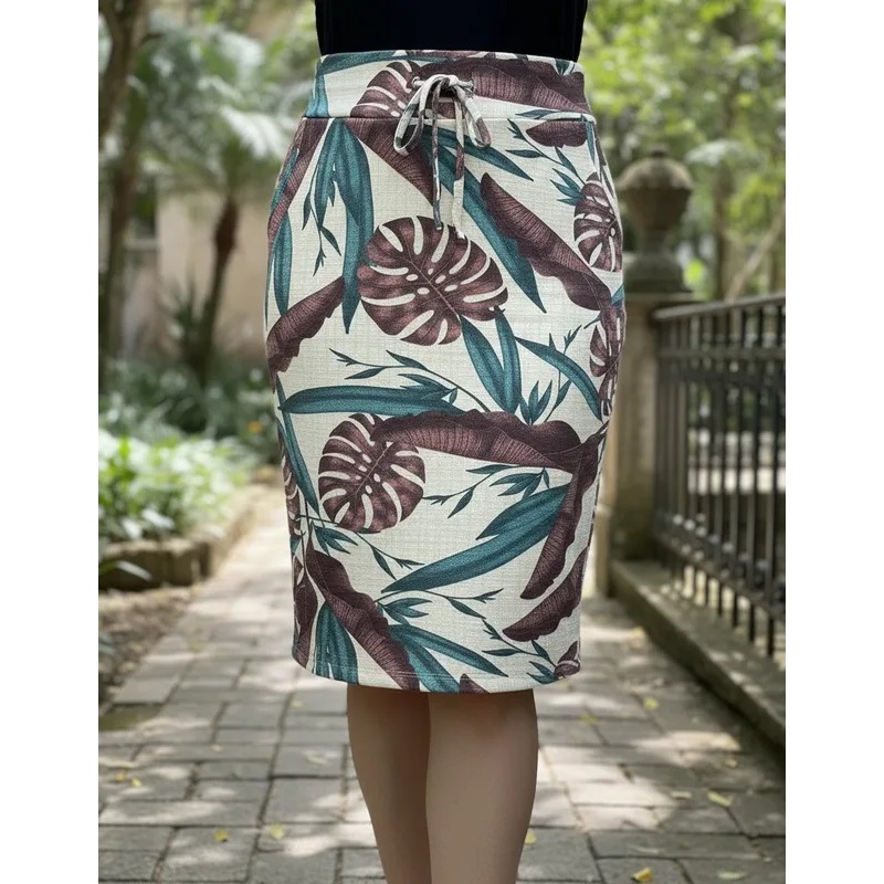 Saia casual Linda em Cintura Alta Estampado com bolsos Moda Feminina Evangélica