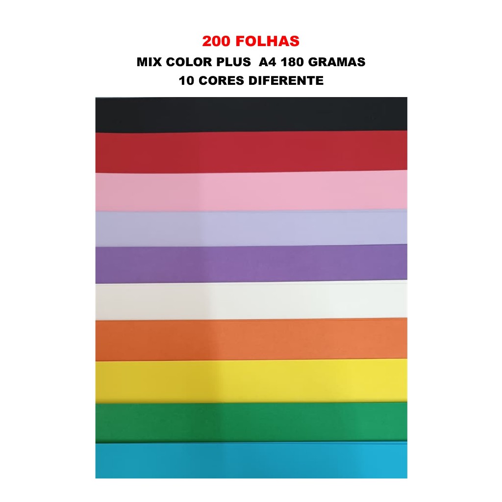 MIX Papel Color Plus A4 180 Grama Com ****10 Cores Diferentes**** com Massa Colorida