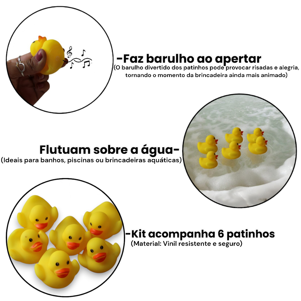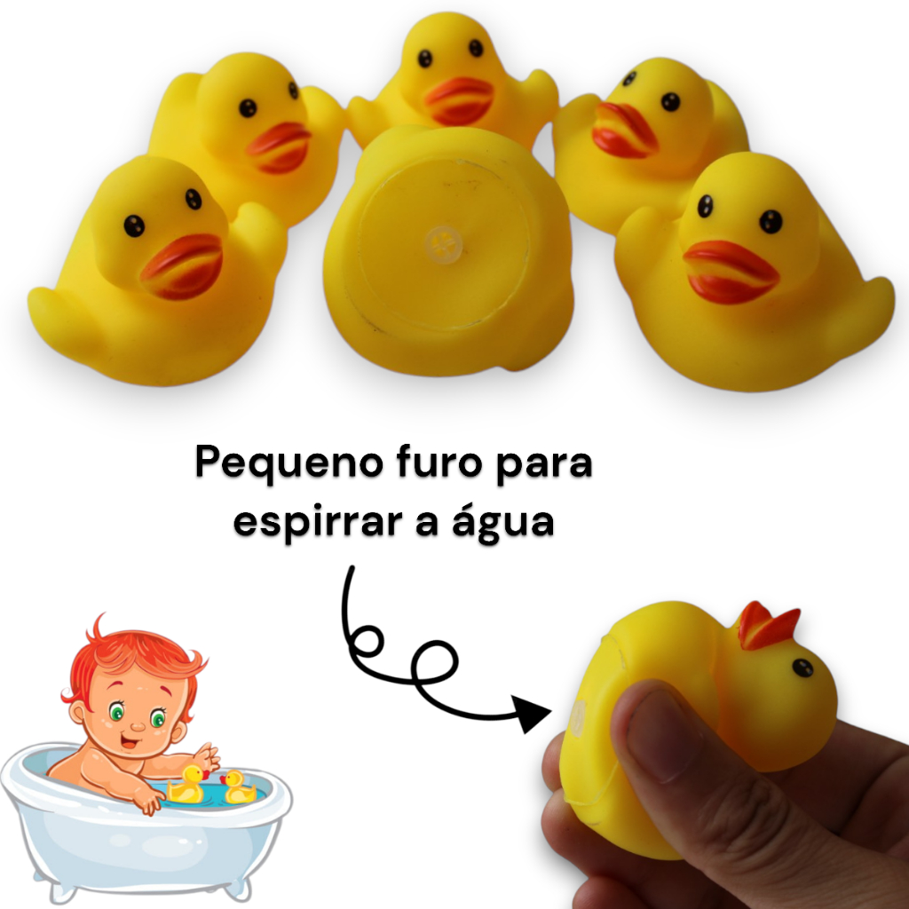 Kit Brinquedo 6 Patinhos De Vinil Pato Para Hora Do Banho Divertido Com Barulho