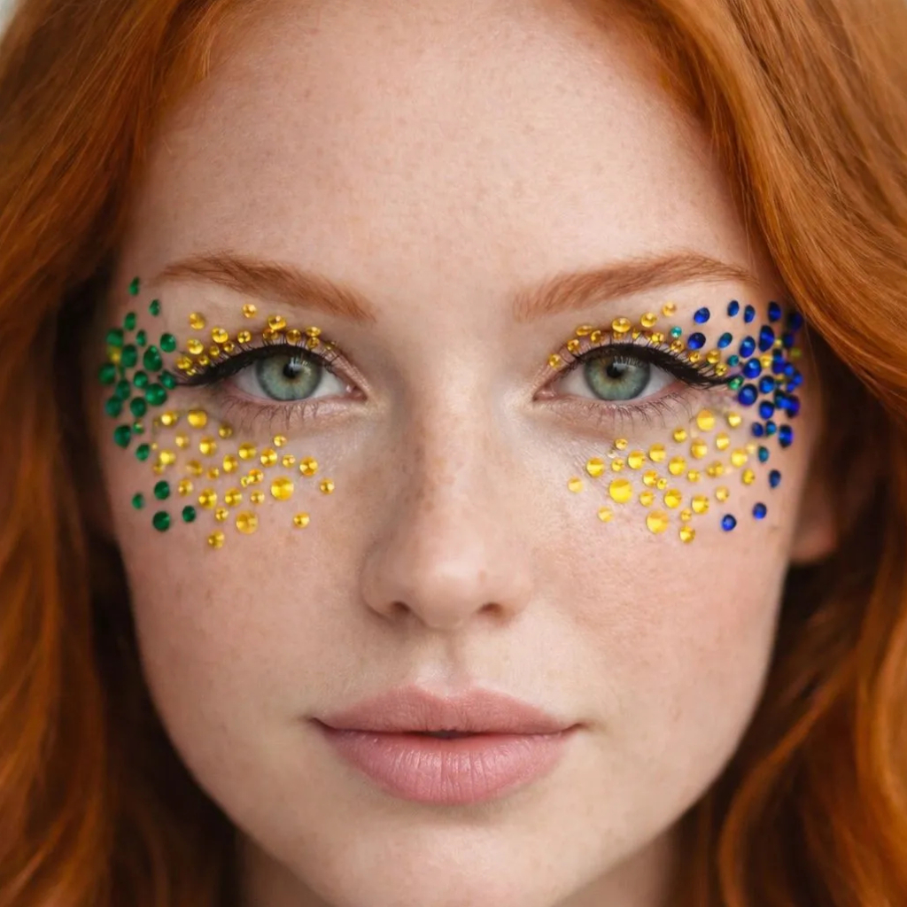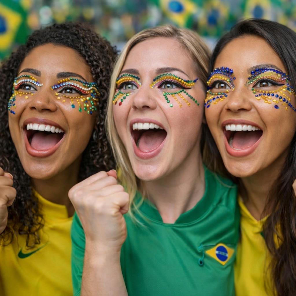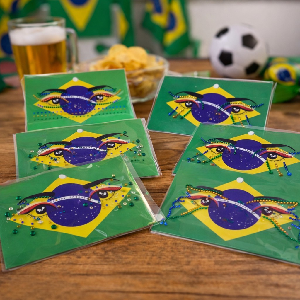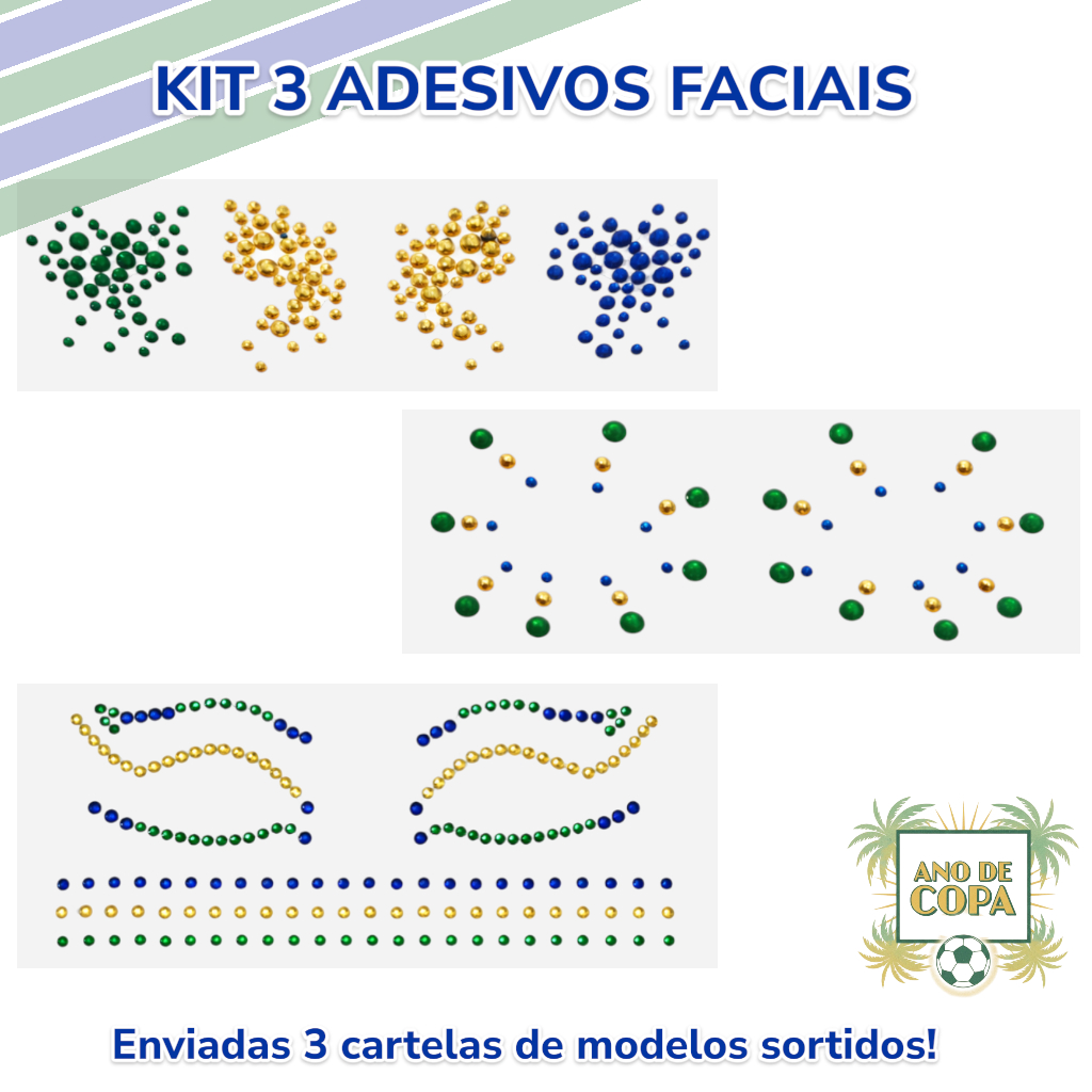 3 Cartela Adesivo Facial Rosto Brasil Copa Do Mundo Strass
