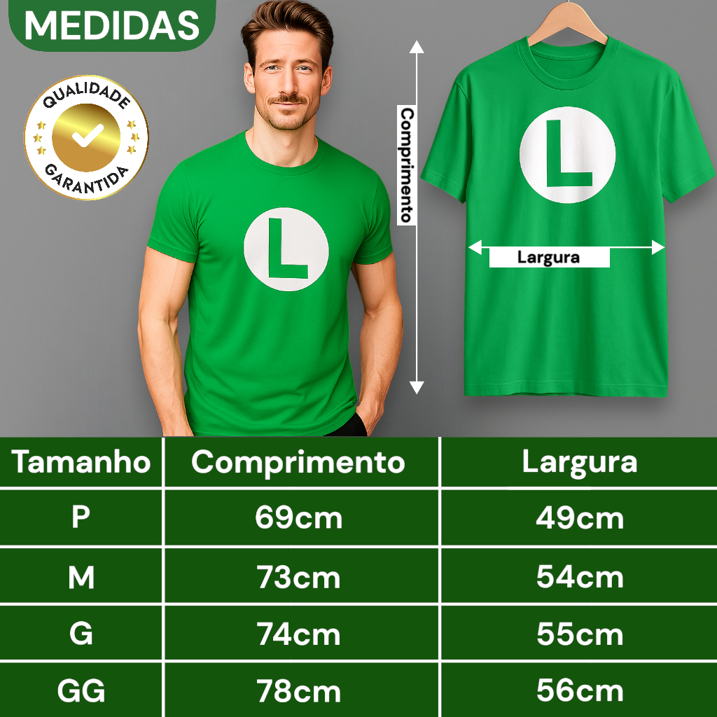 Camiseta Do Mario Bros ou Do Luigi 100% Algodão Adulto