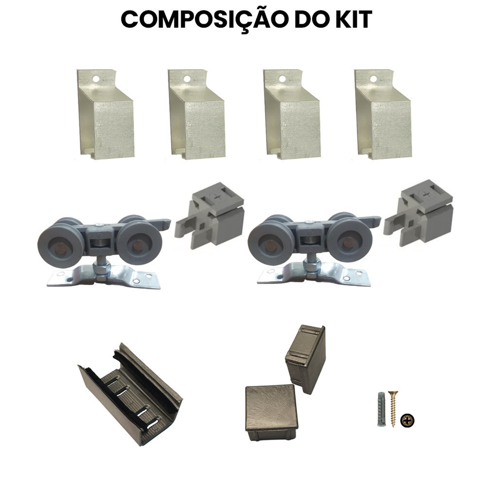 Kit Trilho Porta De Correr Roldana 2 Metros portas Até 80kg