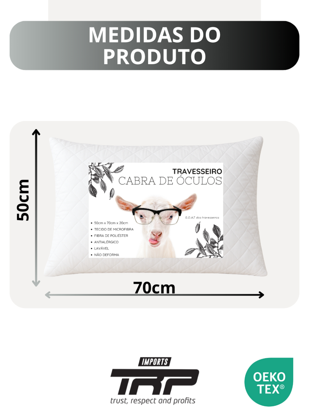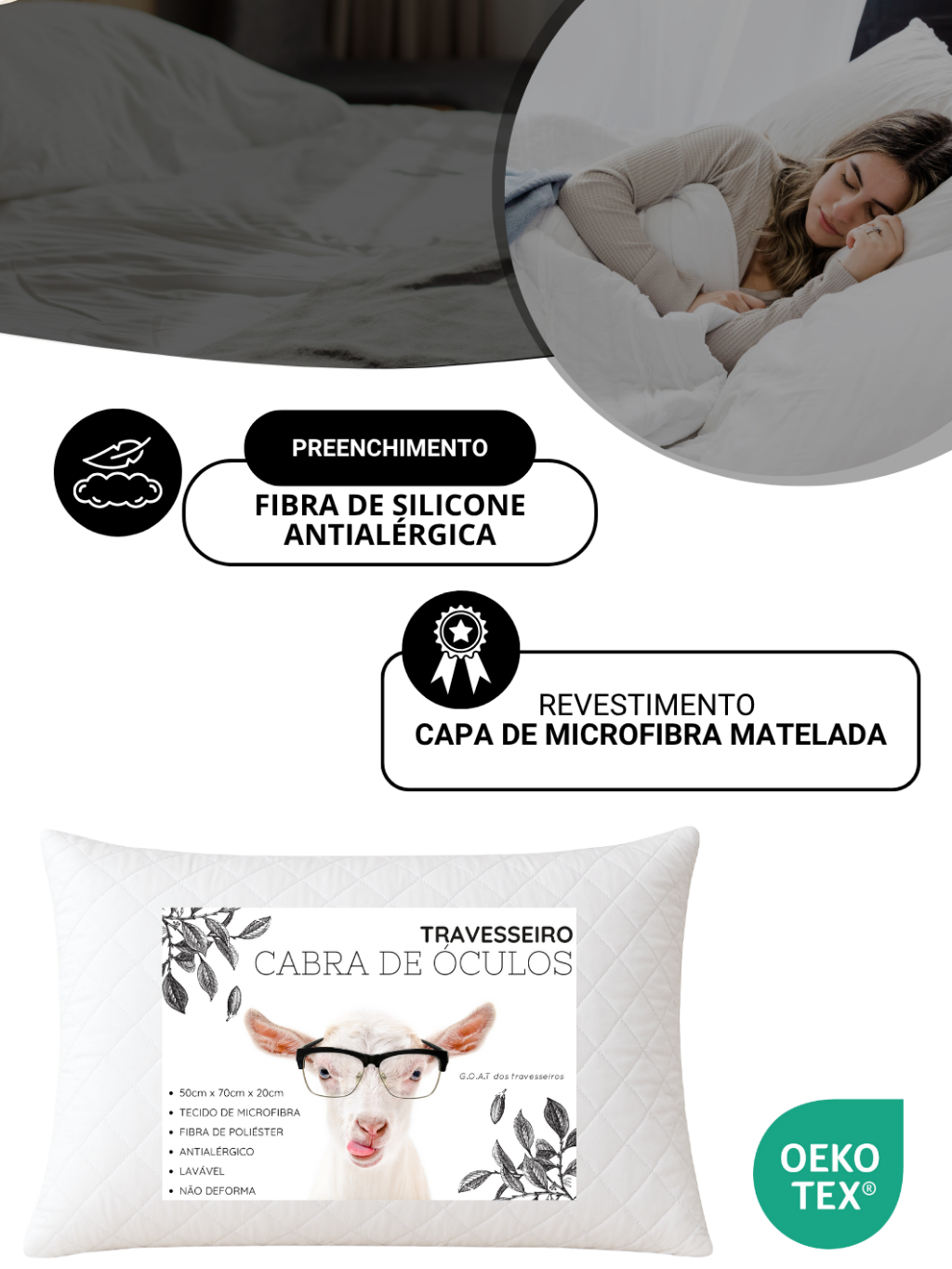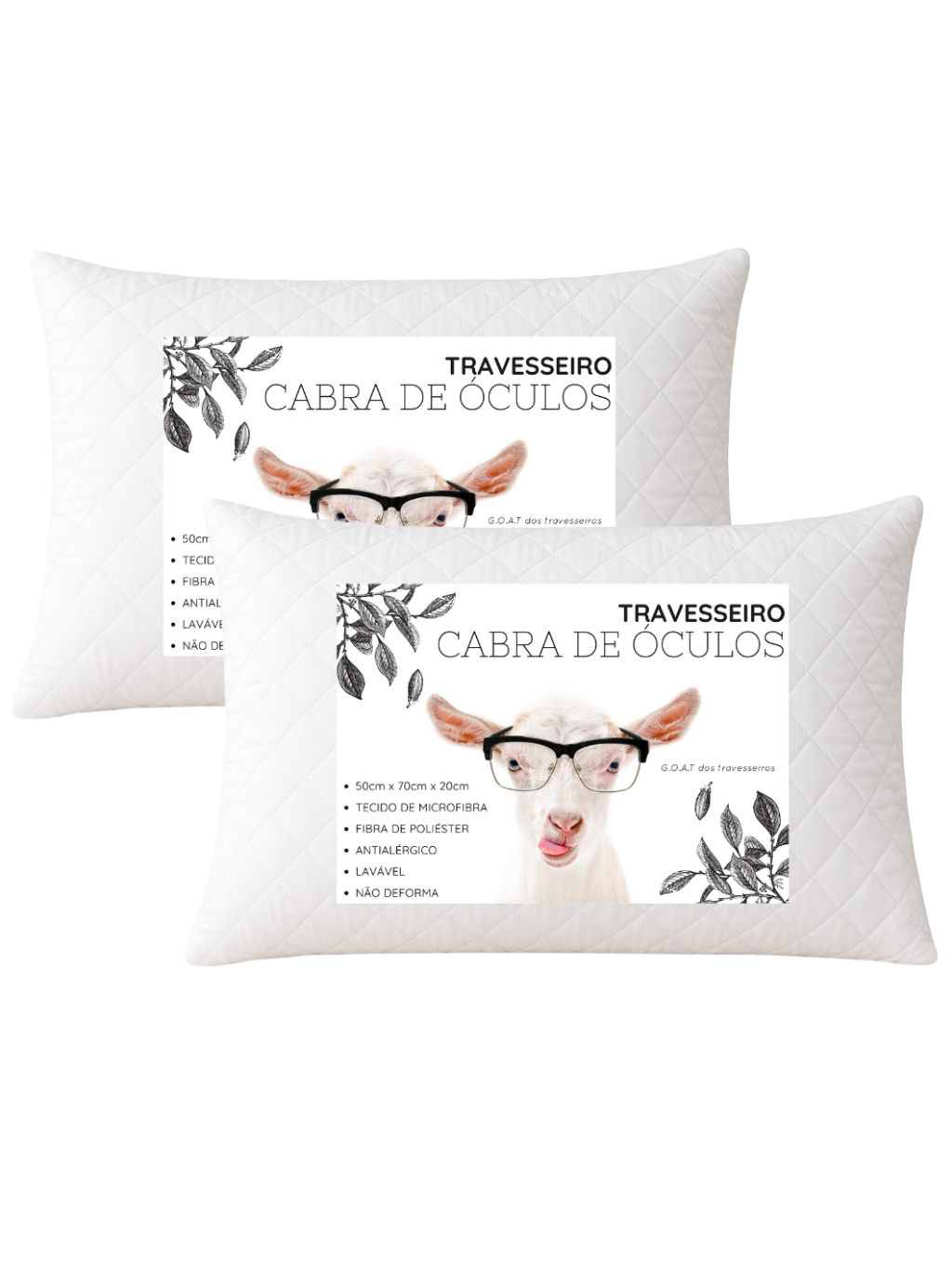 Kit 2 Travesseiros Macios Fibra de Silicone Antialérgica Cabra De Óculos 50x70cm Lavável em Maquina
