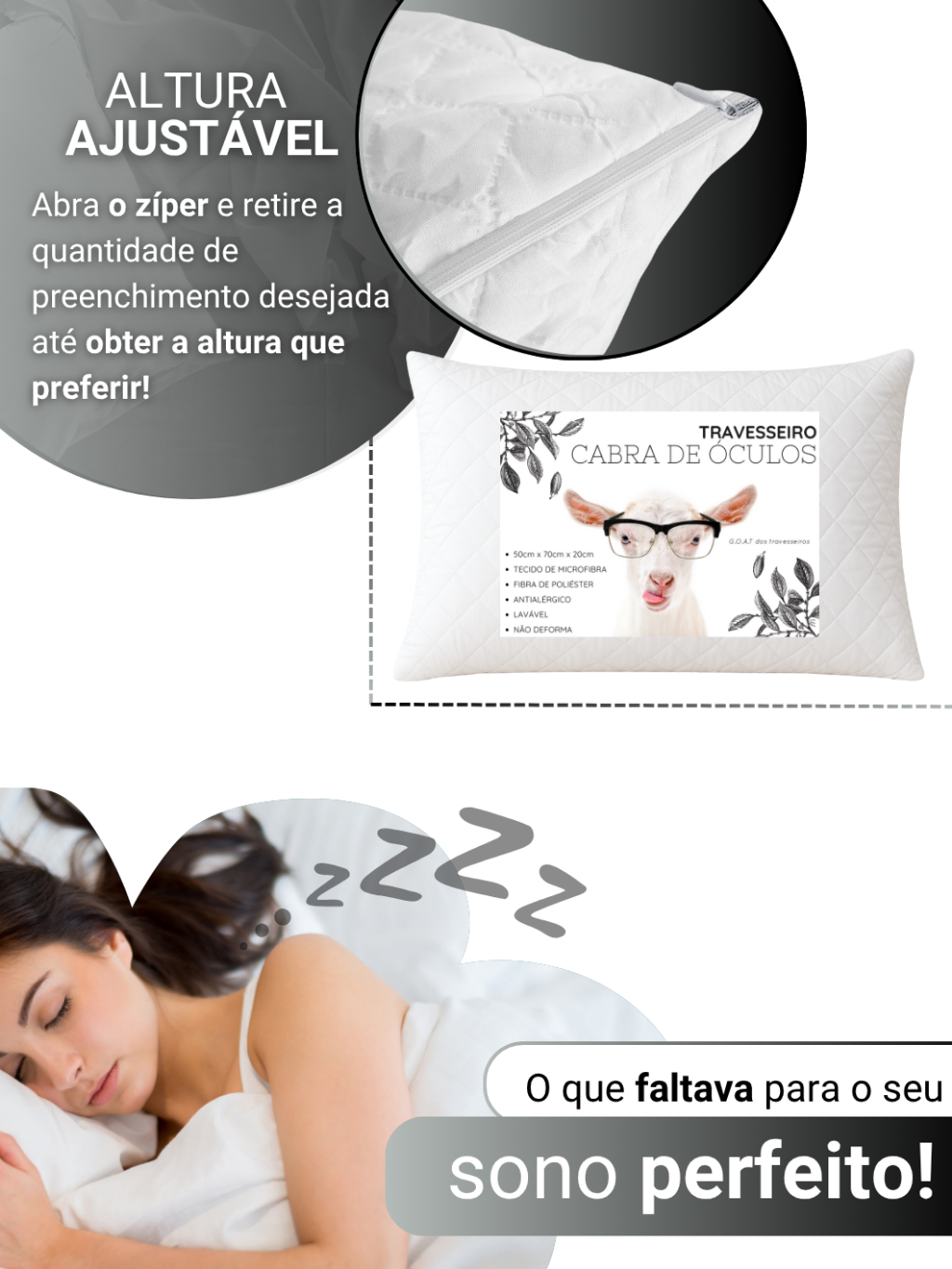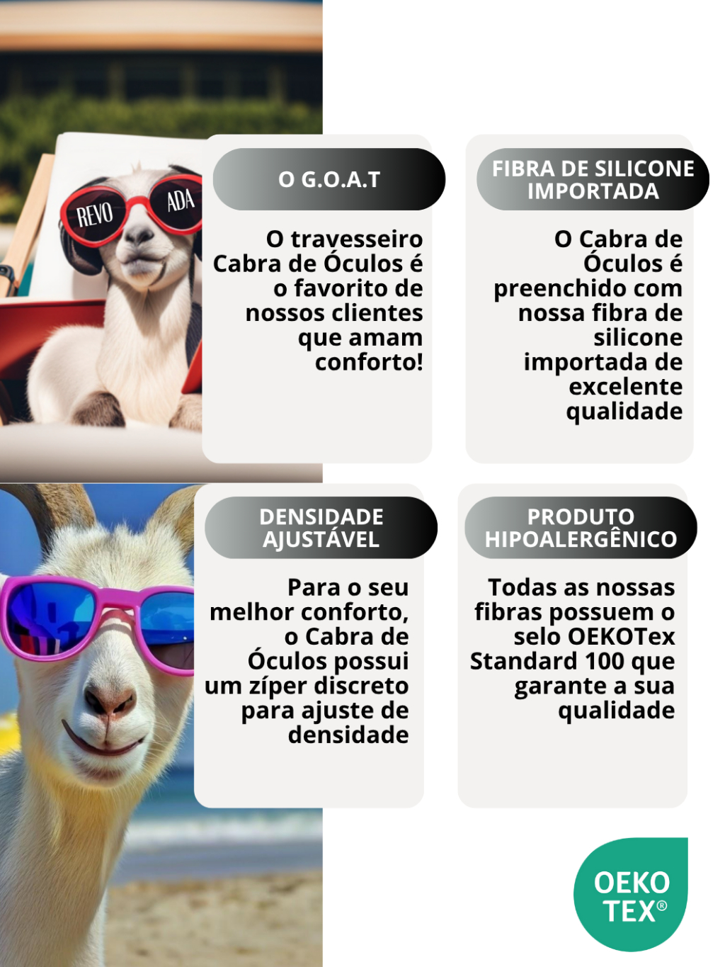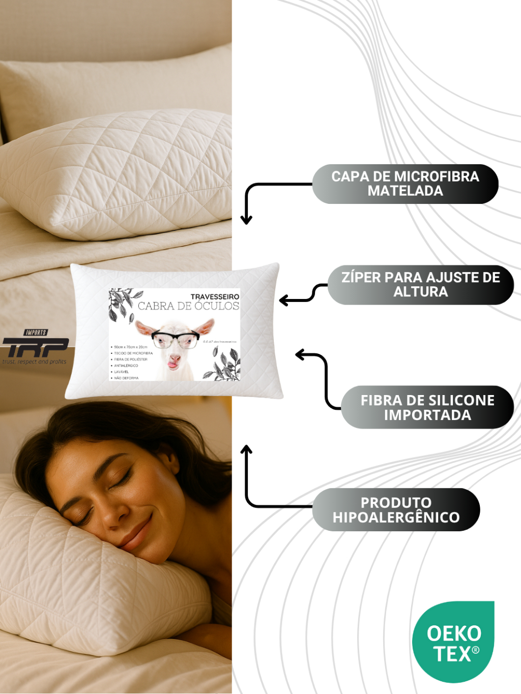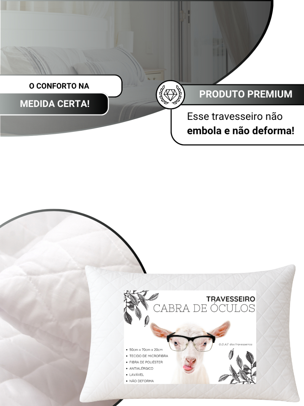 Kit 2 Travesseiros Macios Fibra de Silicone Antialérgica Cabra De Óculos 50x70cm Lavável em Maquina