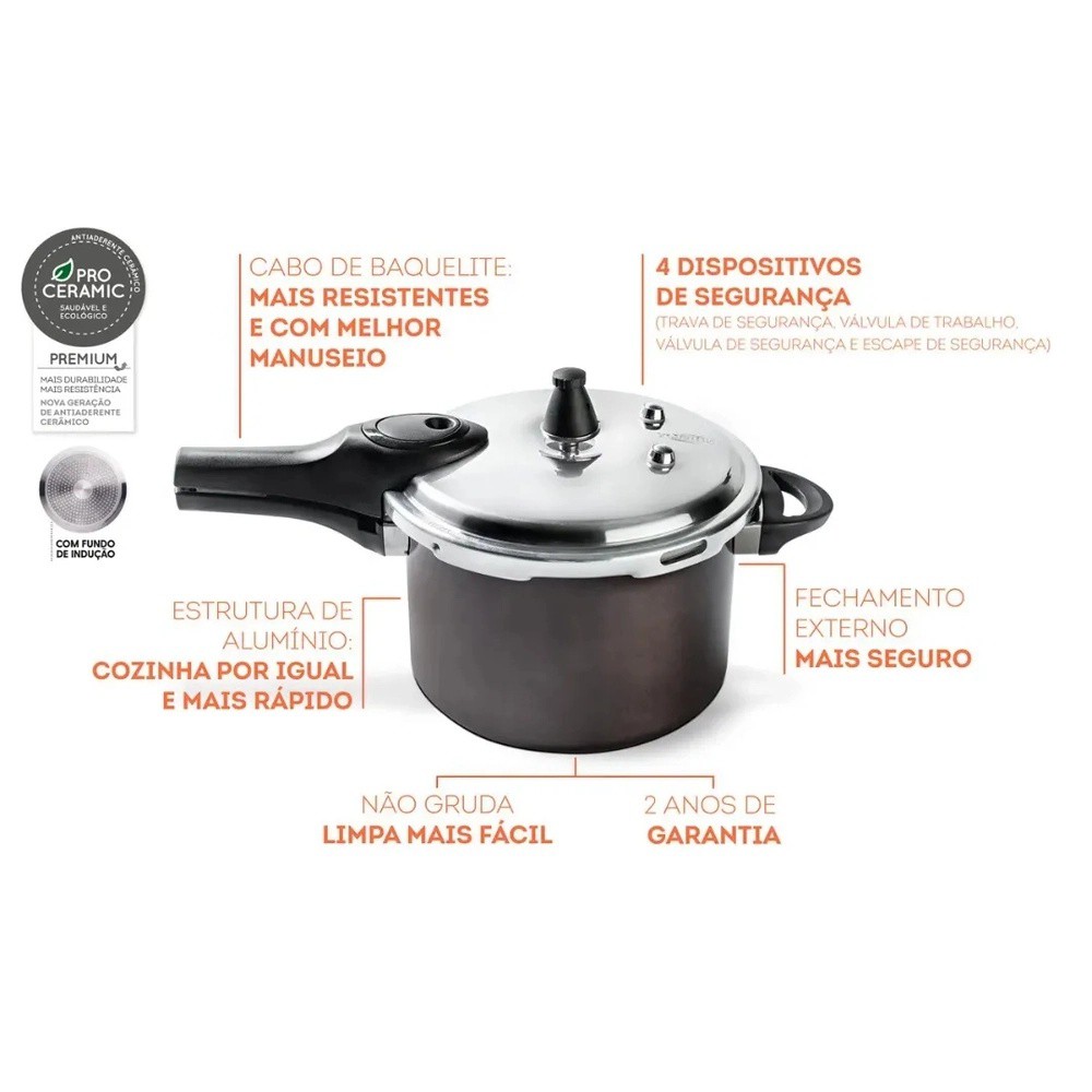 Panela De Pressão Revestimento Cerâmico Indução 4,2l Brinox