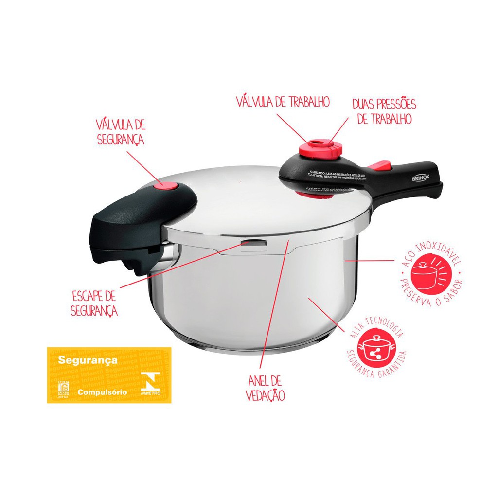 Panela de Pressão Inox 4,5 Litros Supra - Brinox