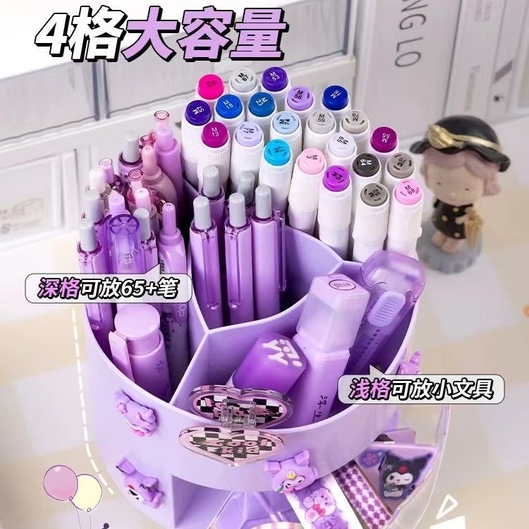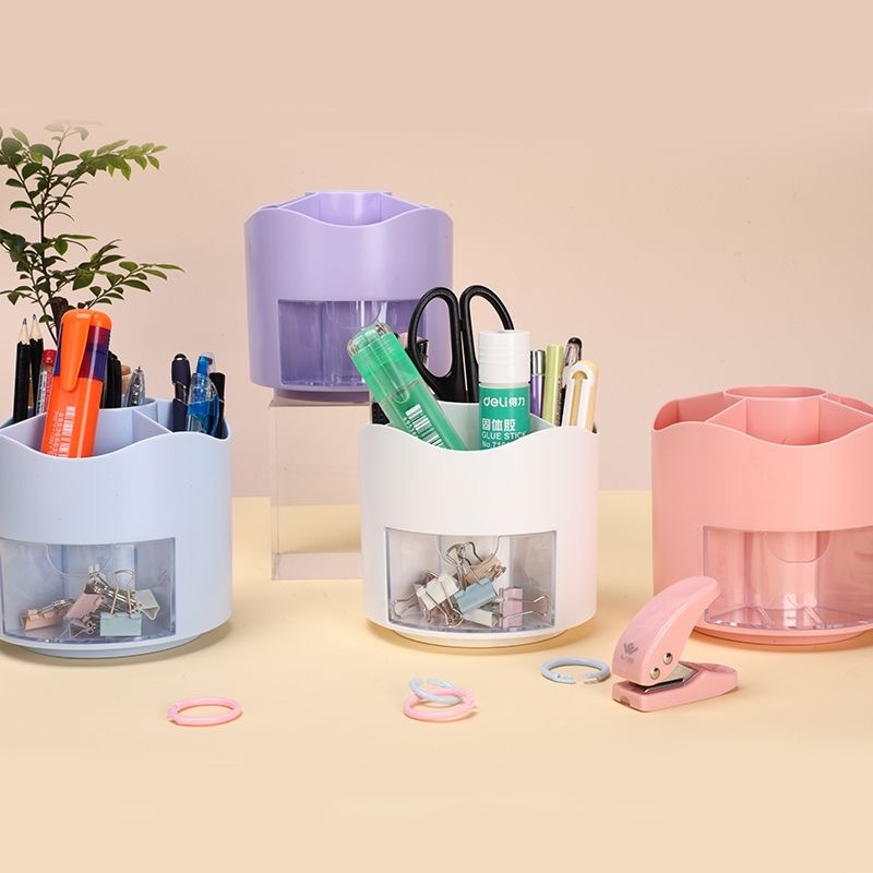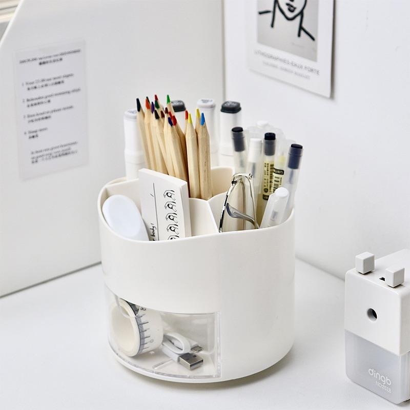Porta lápis Caneta Pincel 360° Rotativo Com 5 Divisórias E Gavetinha Grande Capacidade Armazenamento