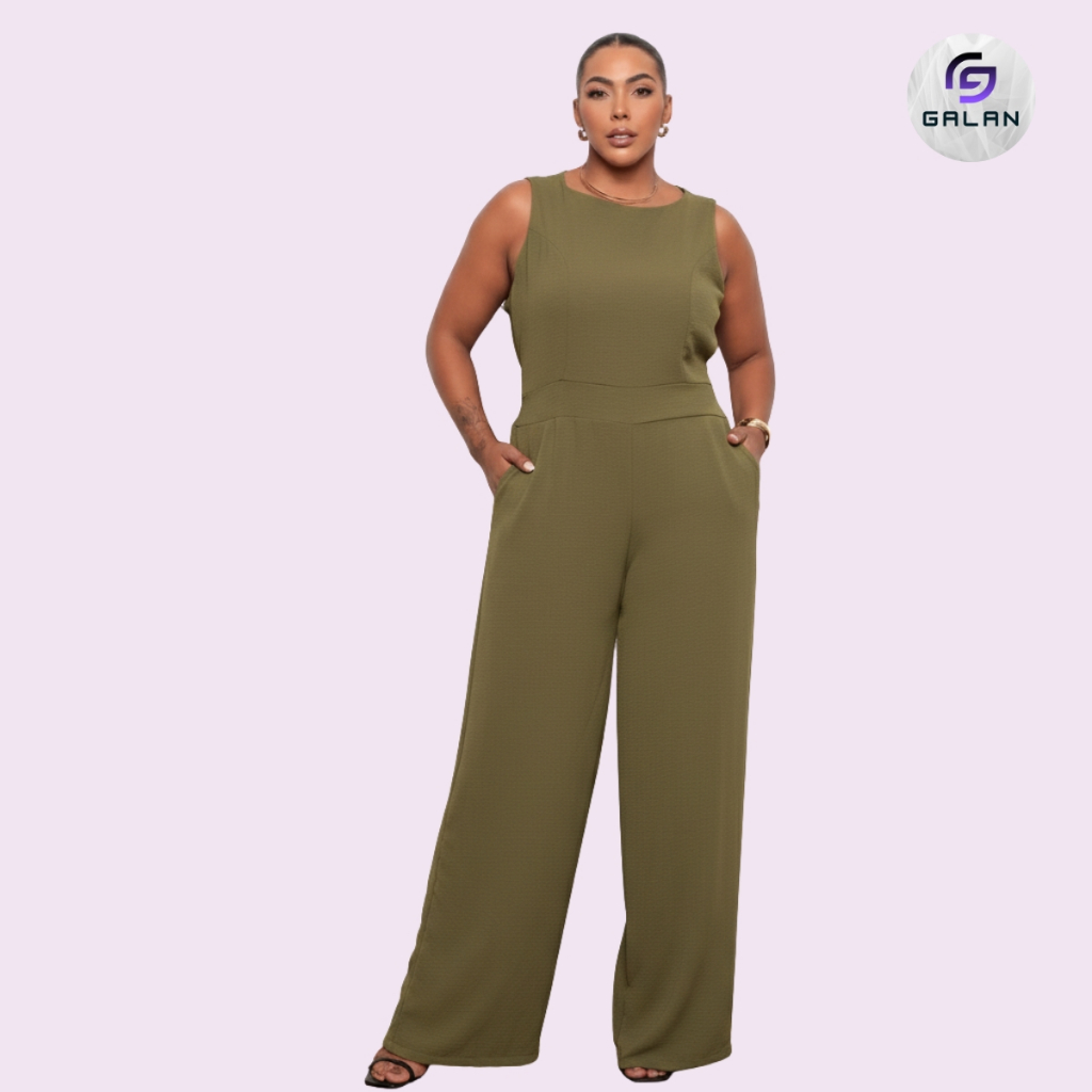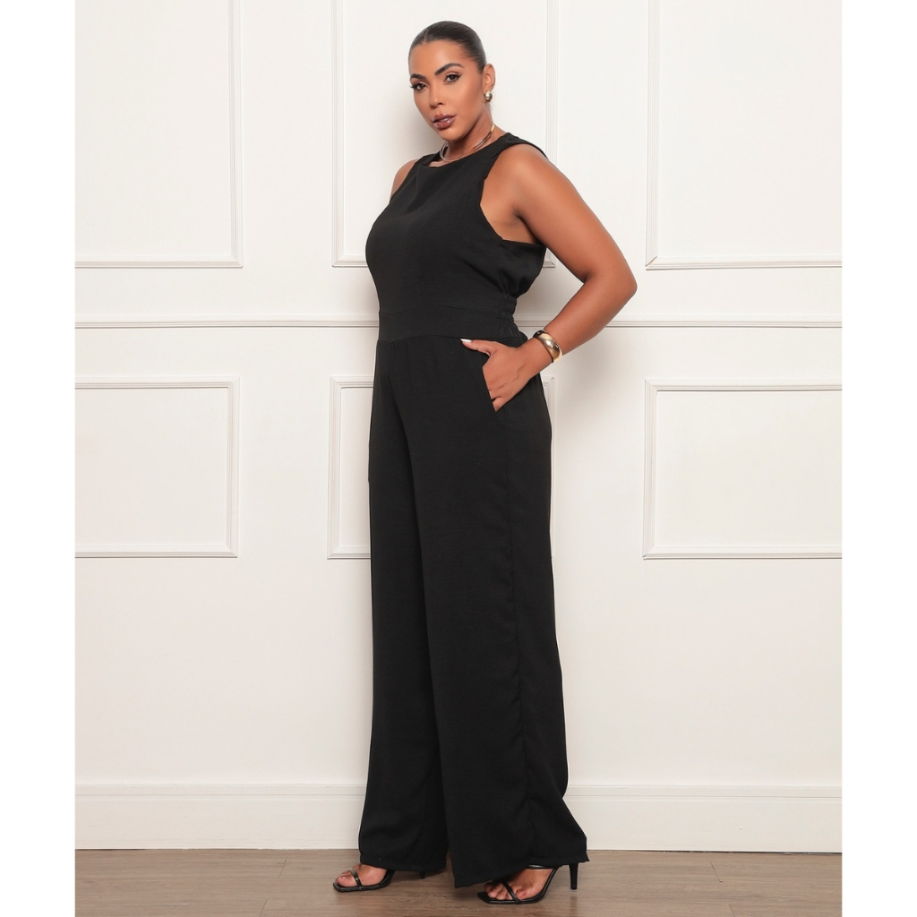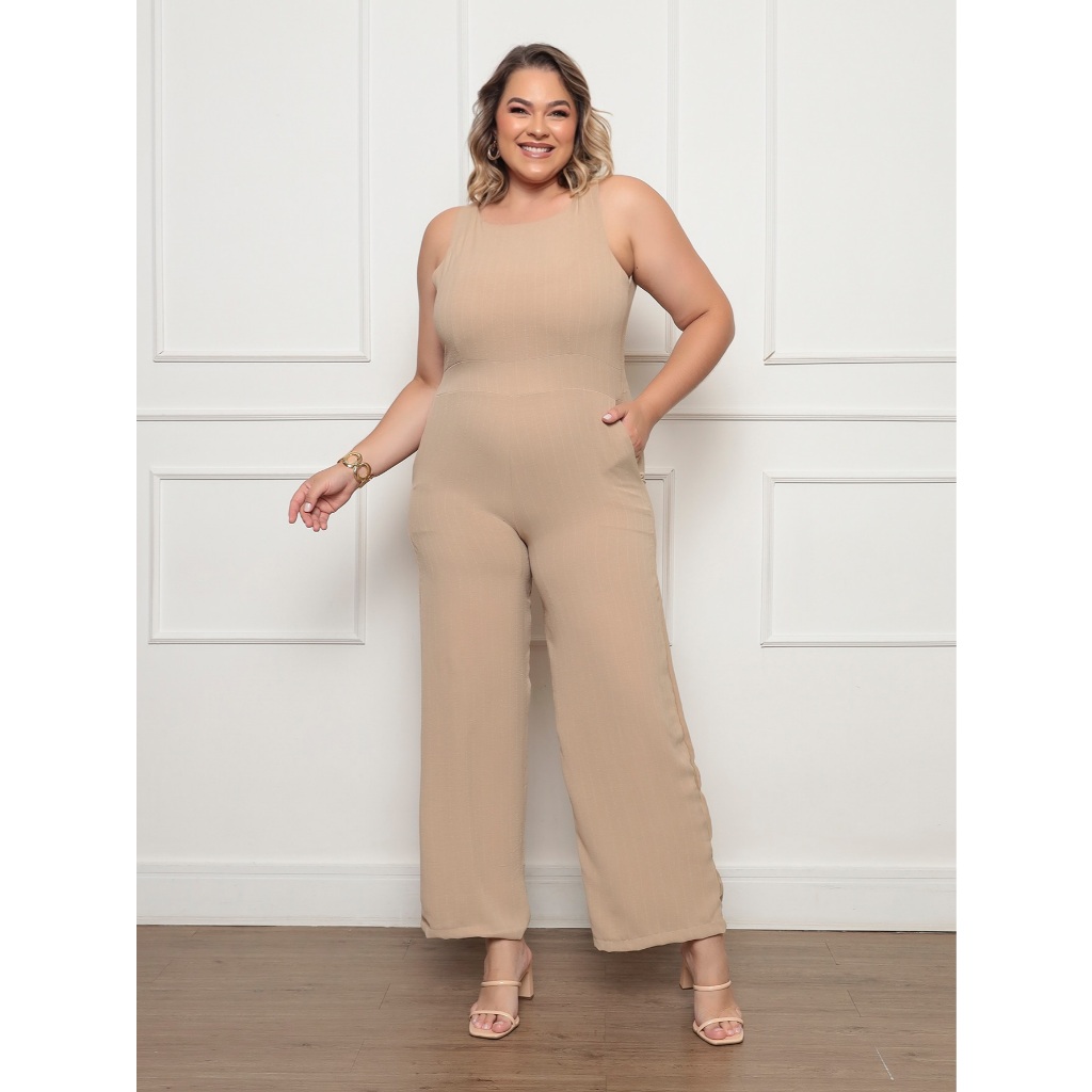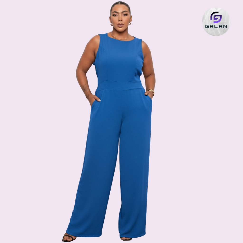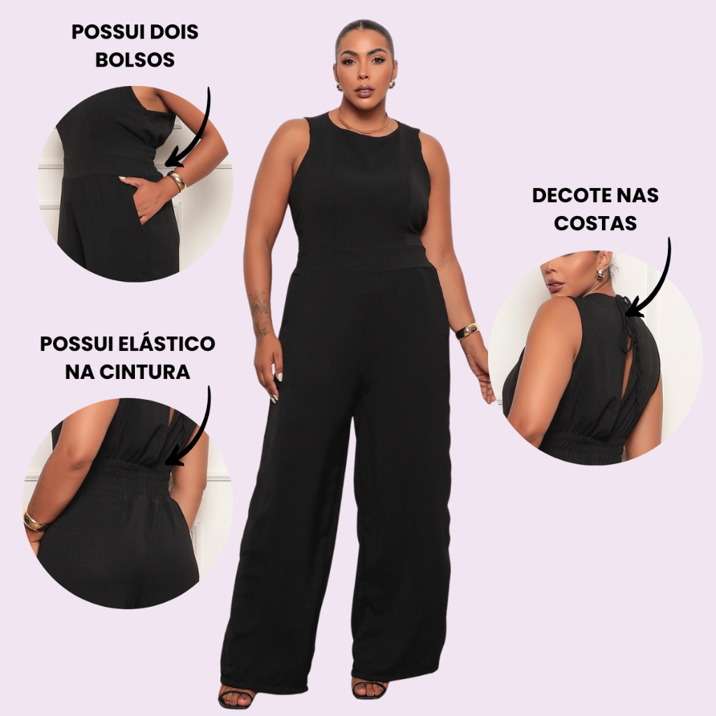 Macacão Feminino Plus Size Longo Social Elegante Duna