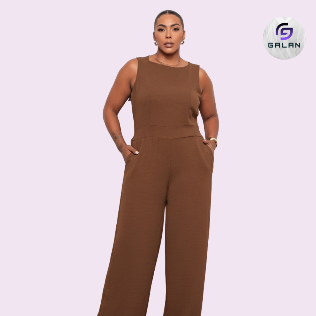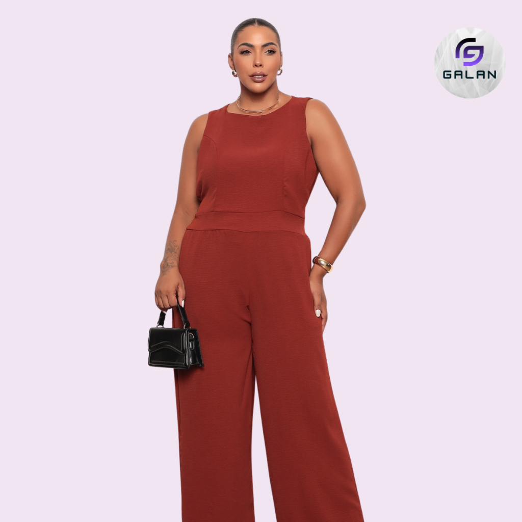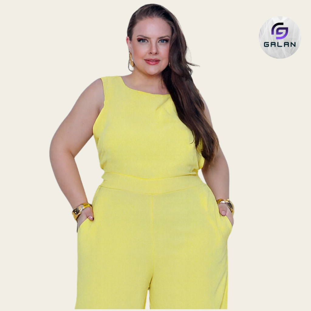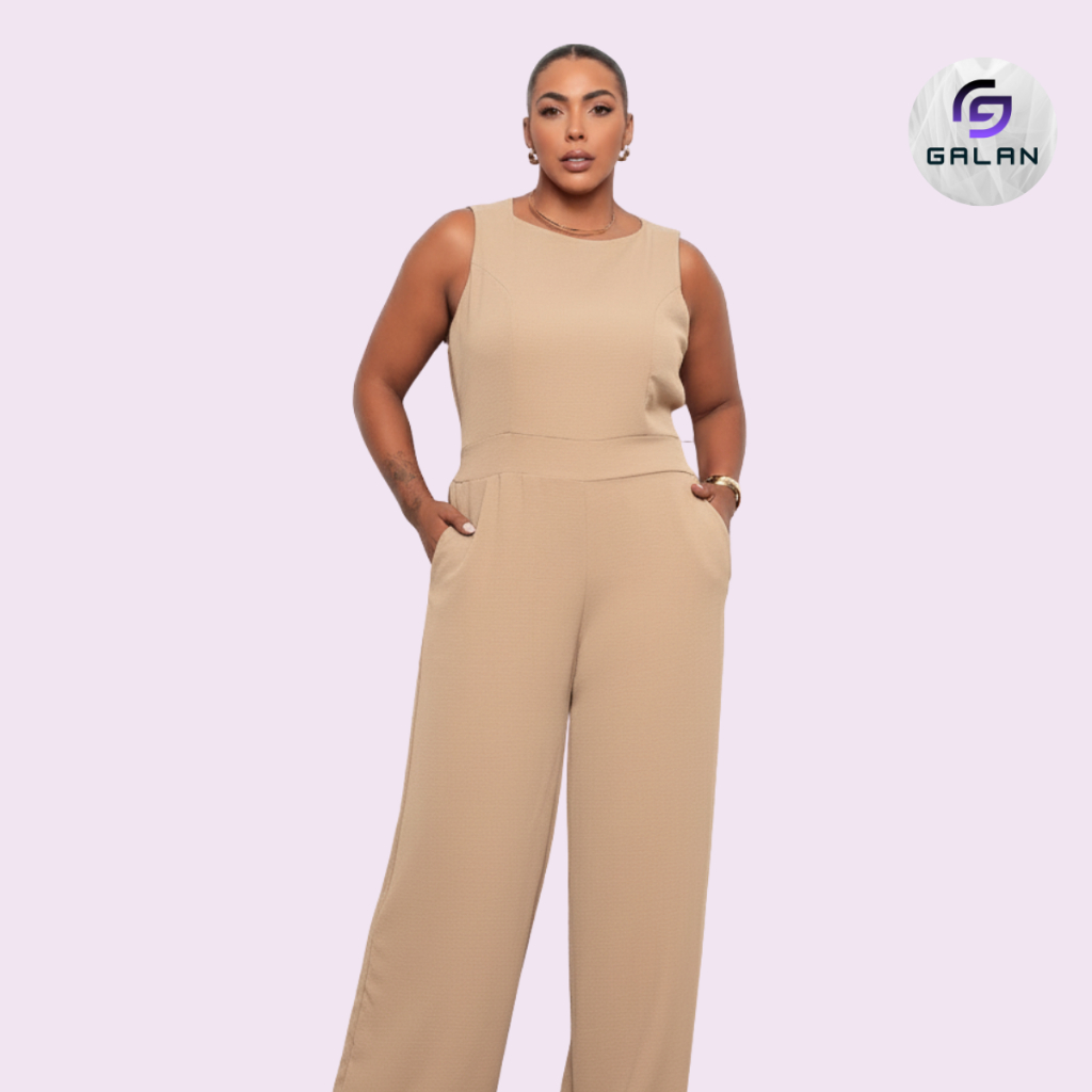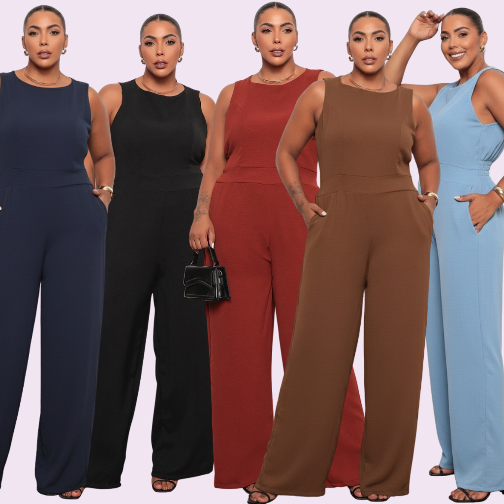 Macacão Feminino Plus Size Longo Social Elegante Duna
