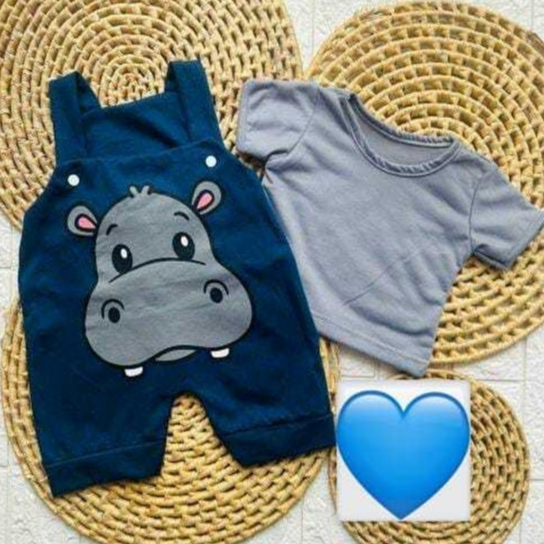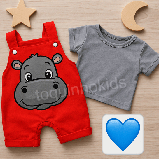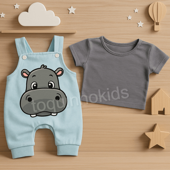 Jardineira + Camisa de bebê menino temática hipopótamo fofa 3 a 6 meses verão calor passeio