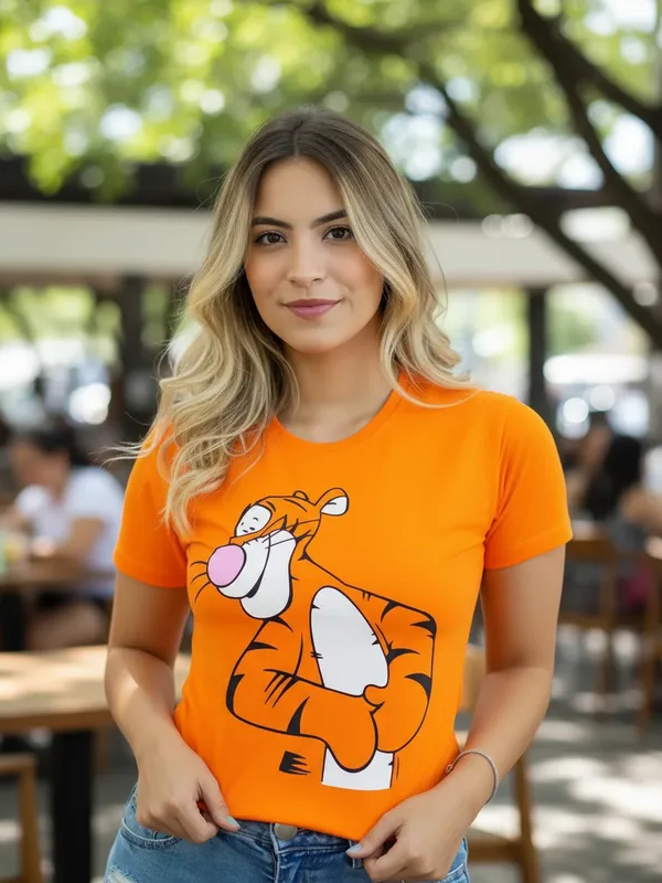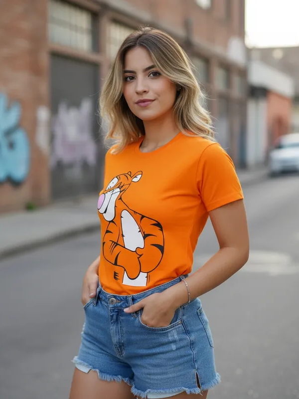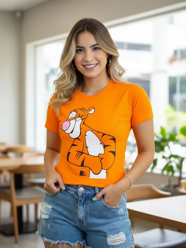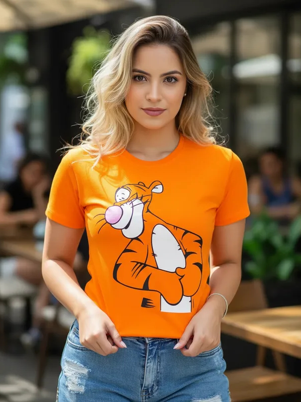 Camiseta T-shirt Feminina Estampada desenho Tigrão Laranja do filme timão e pumba