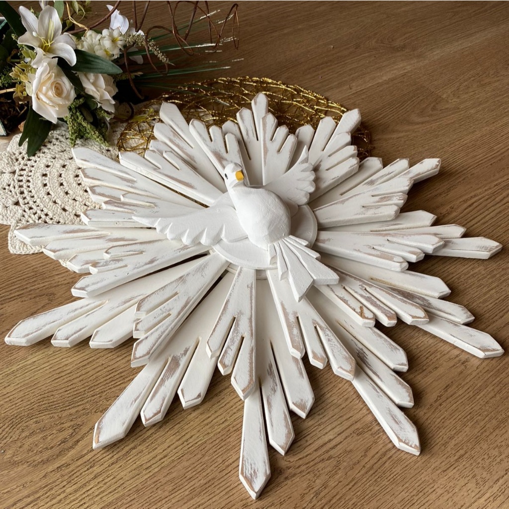 Promoção Lindo Resplendor Divino Espirito Santo Branco 60X60CM, decoração, batizado, casamento