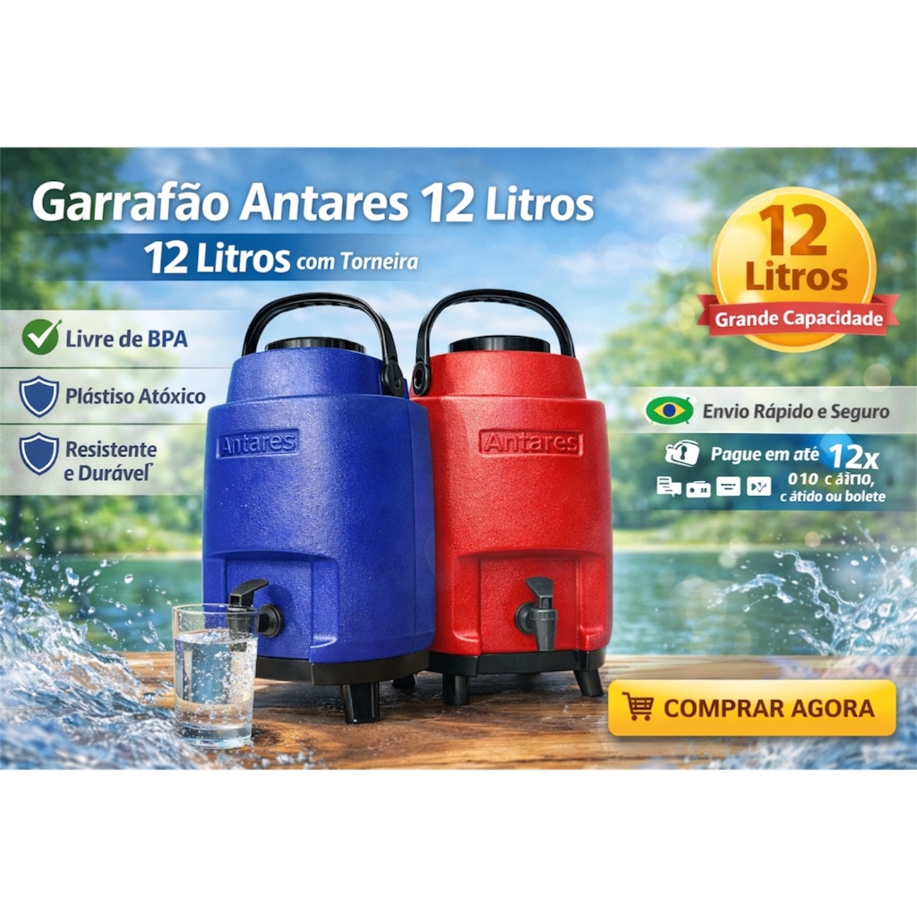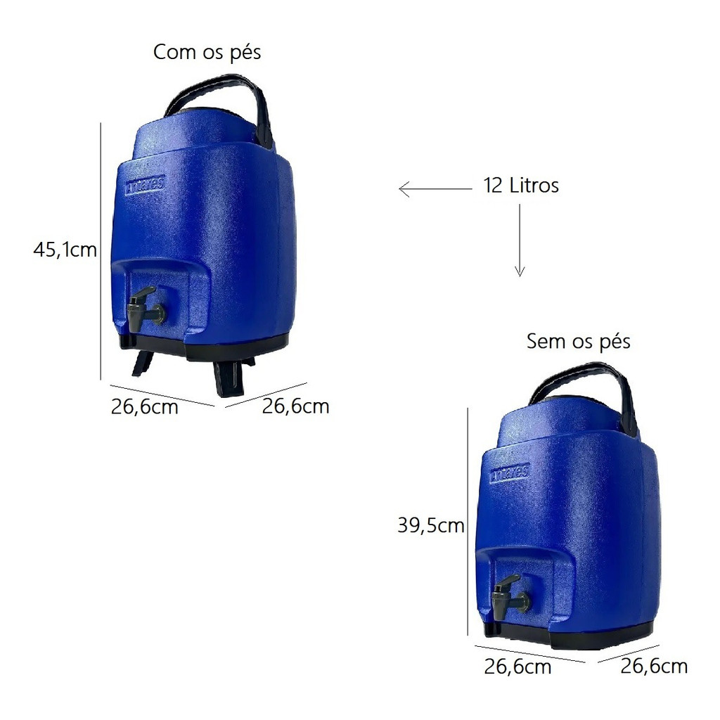 Garrafa Térmica 8/12 Litros COM Torneira Azul Garrafão Alça Pé Antares Botijão Térmico Galão MANTEM
