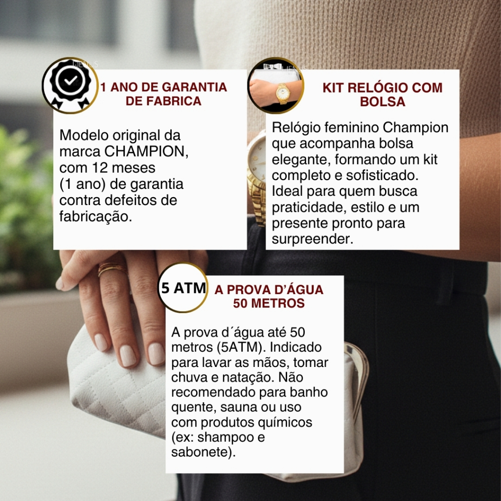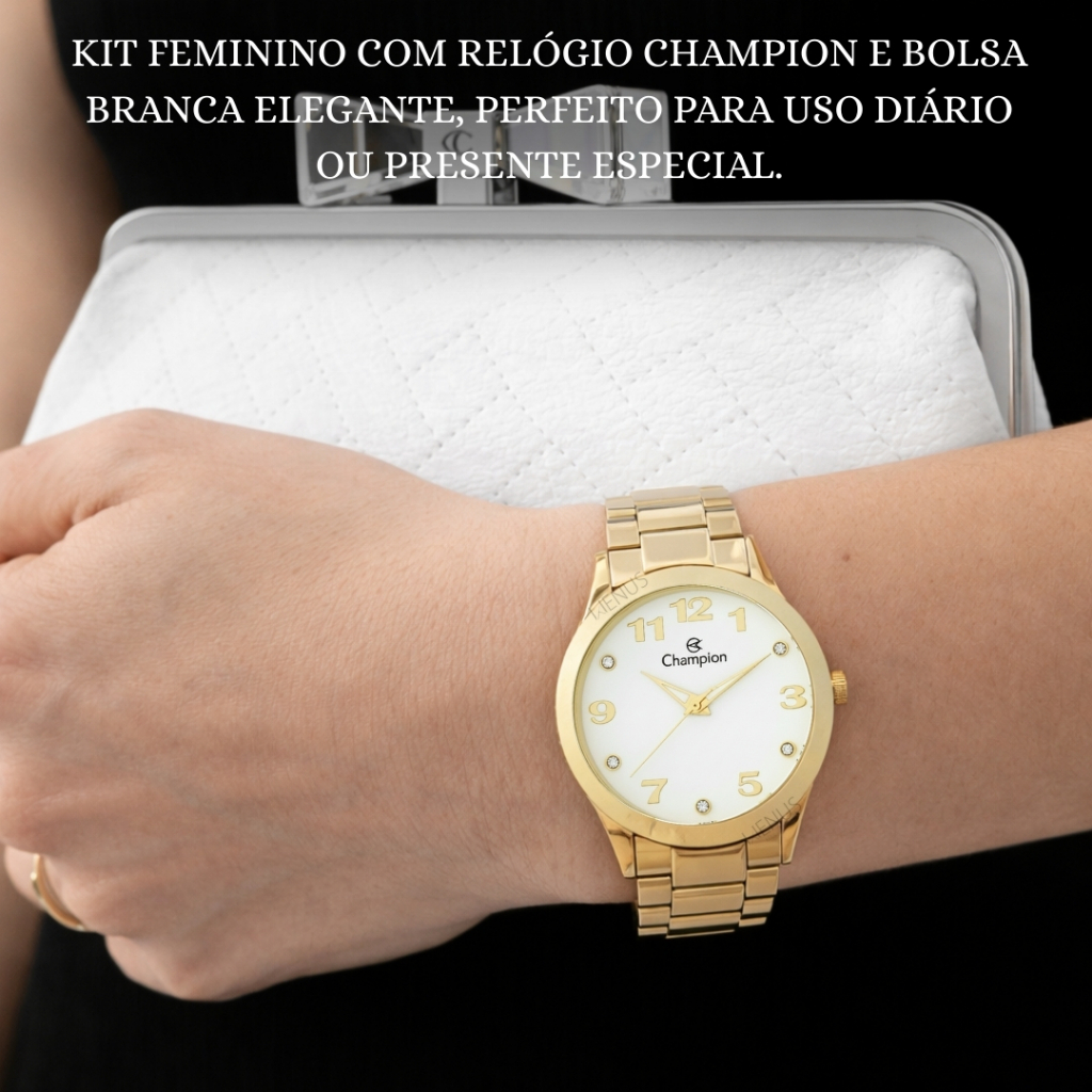 Kit Relógio De Pulso E Bolsa Sofisticada Original Champion
