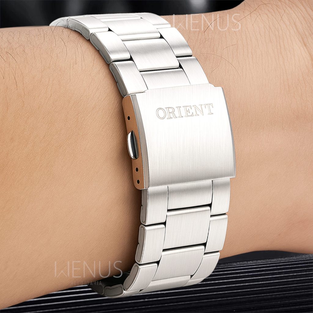 Relógio Orient Masculino De Pulso Prateado Em Aço Inoxidável Quartz Calendário Prova D'água 50 Metros Original