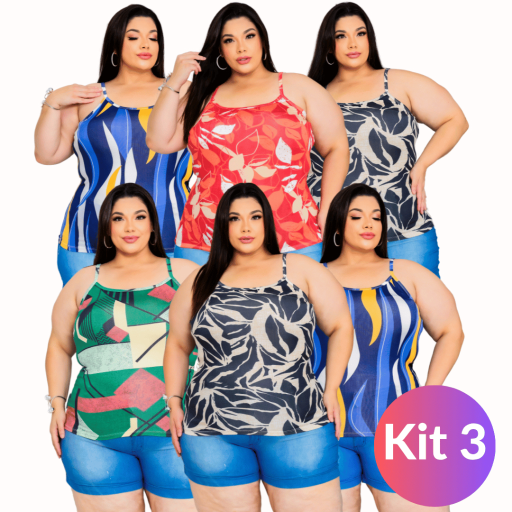 Kit 2 ao Kit 4 Regata Alça Alcinha Casual Feminino Atacado Plus Size