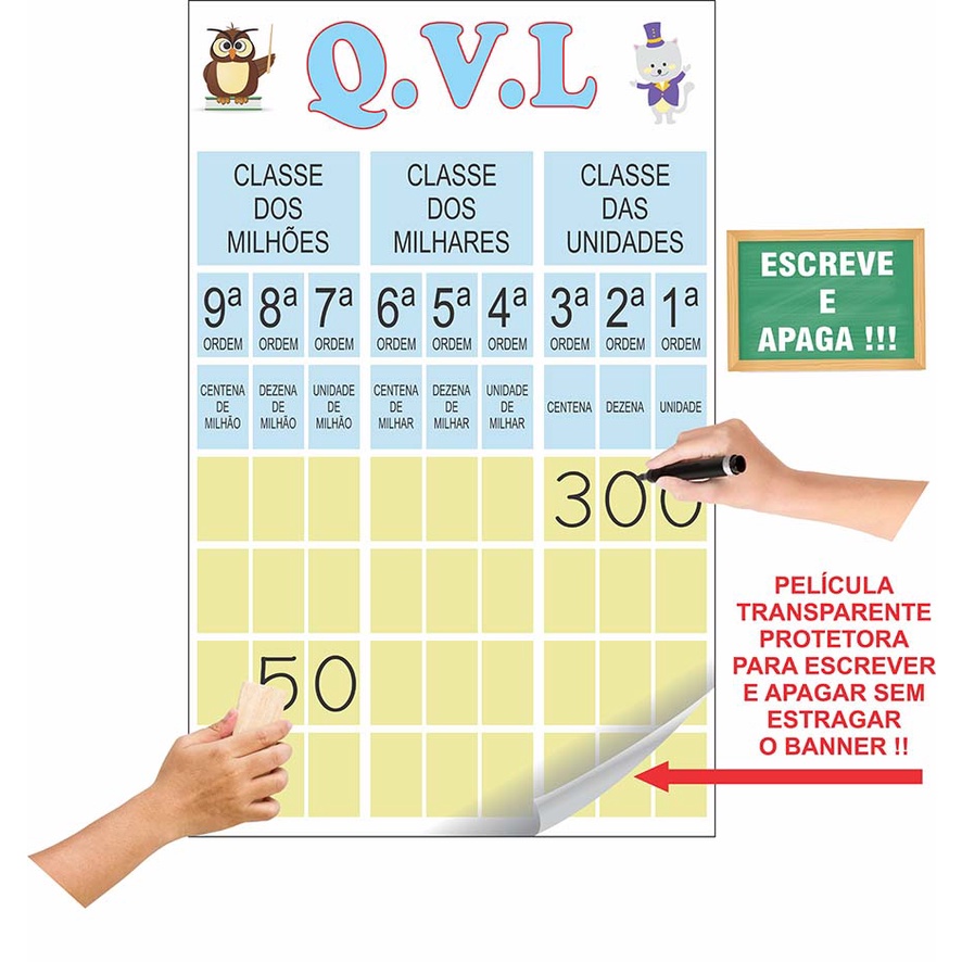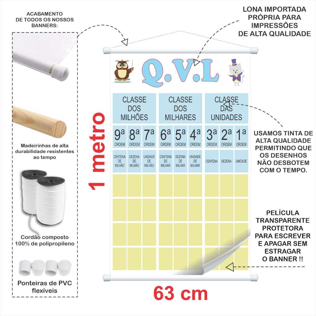 Banner pedagógico QVL classe e ordem escolar escreve e apaga plastificado