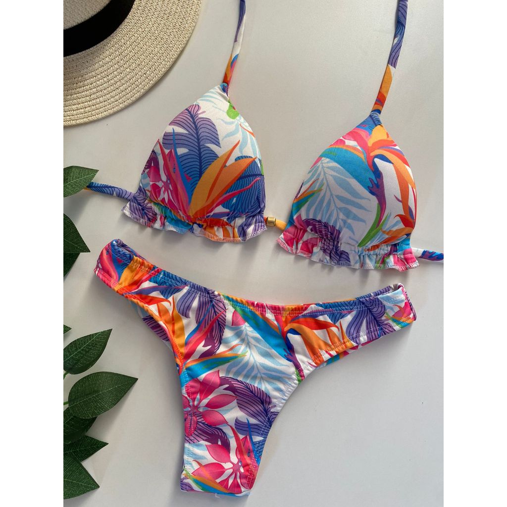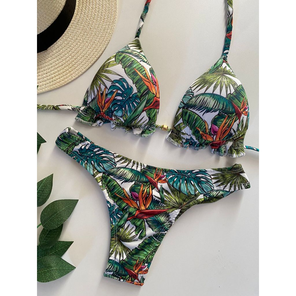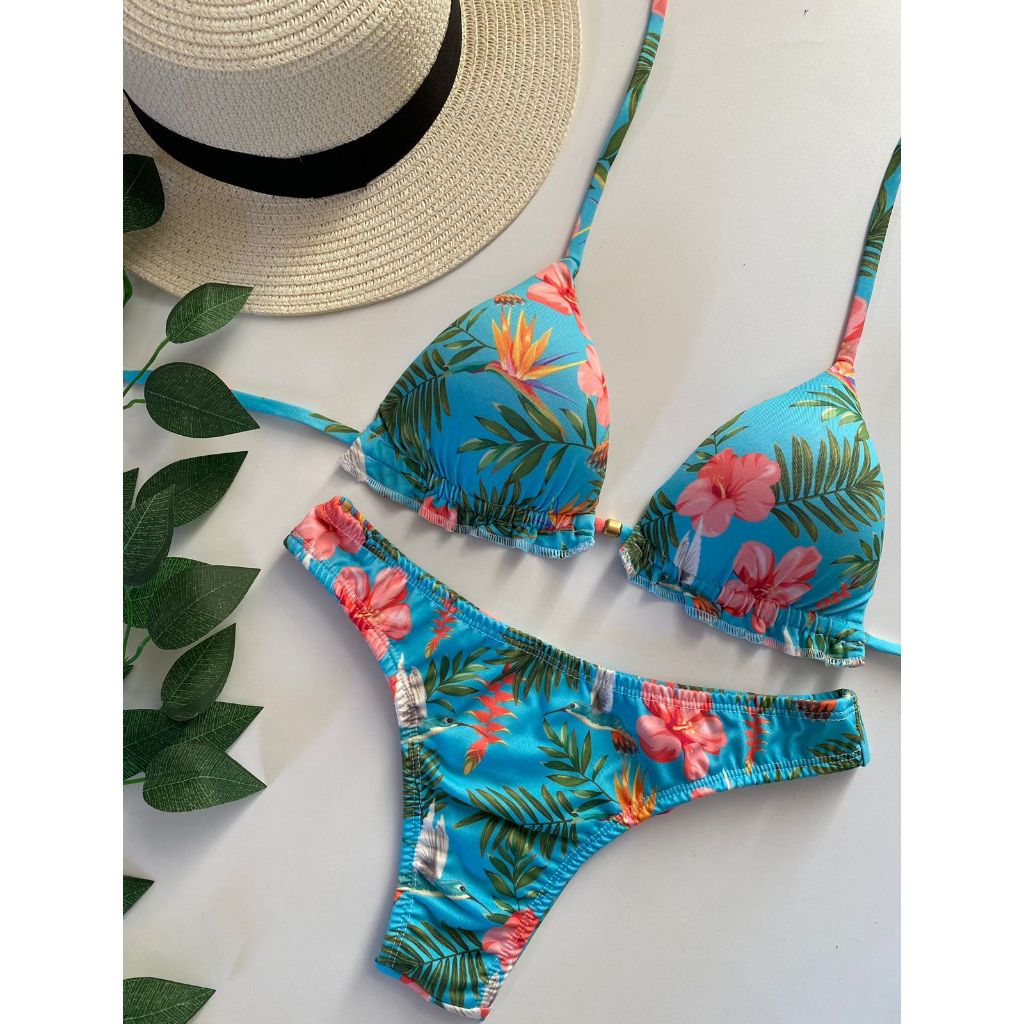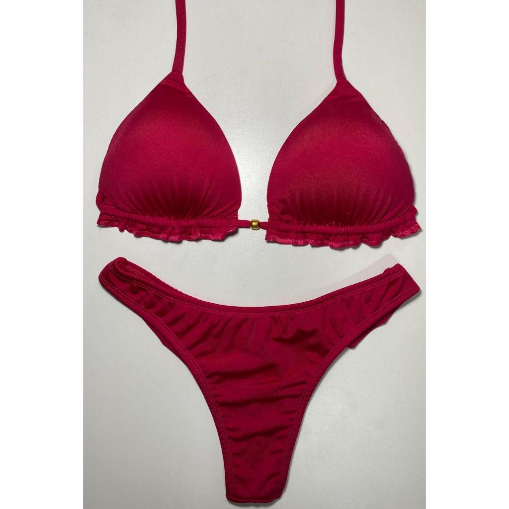 Biquíni Feminino Cortininha com Bojo removível e calcinha modelo fio duplo Moda praia