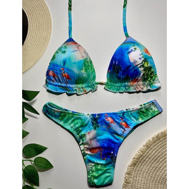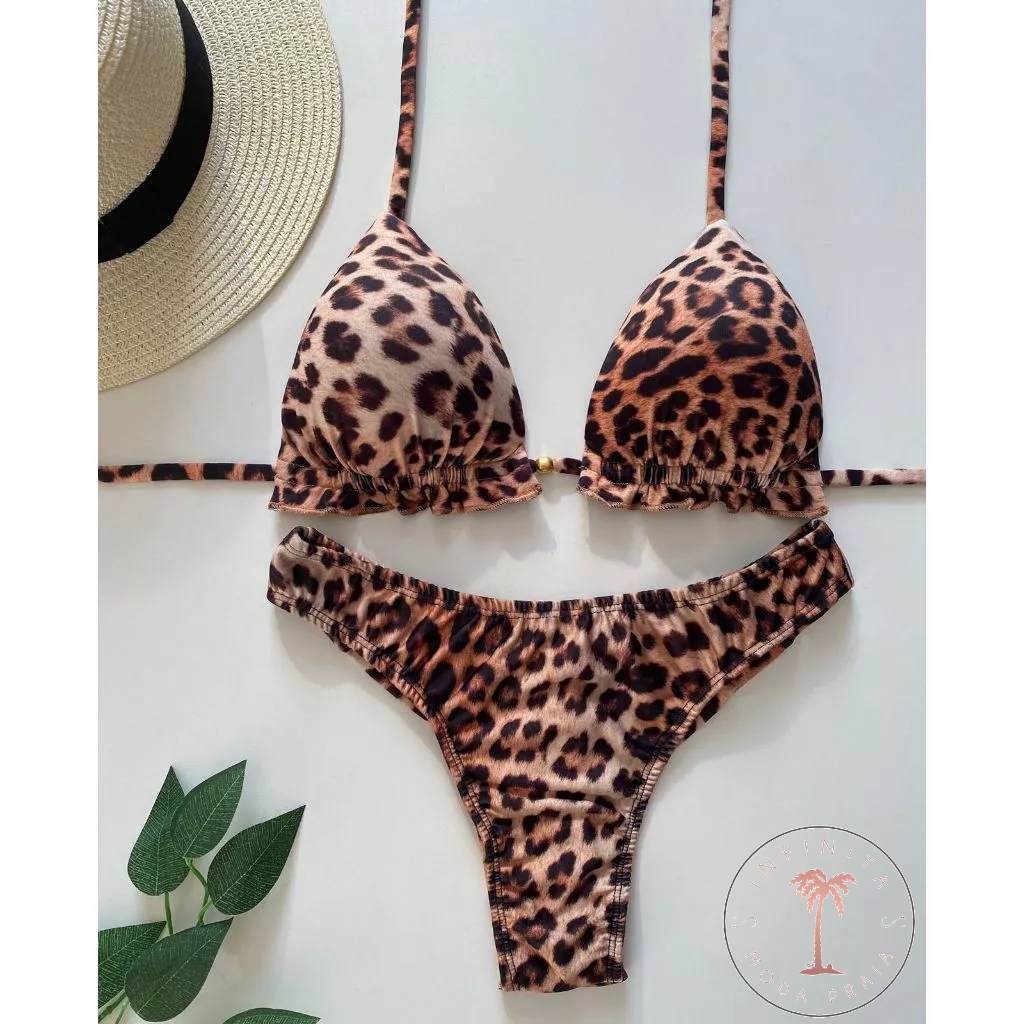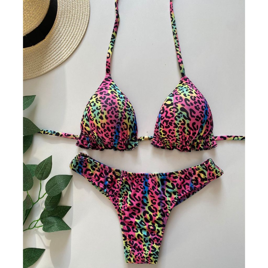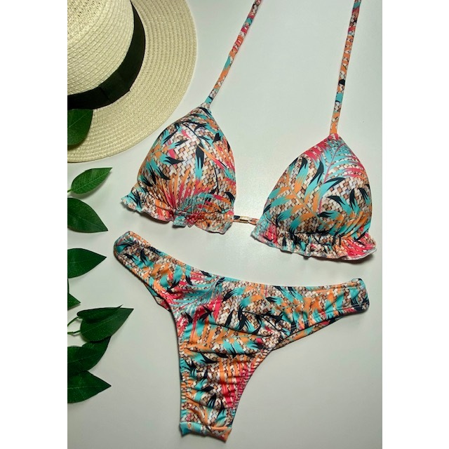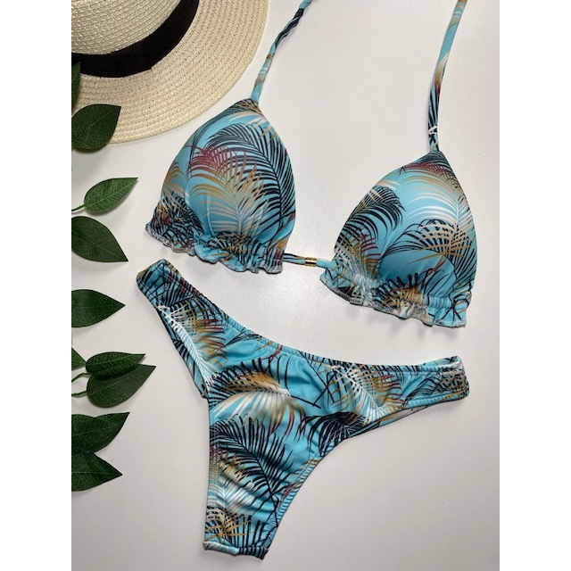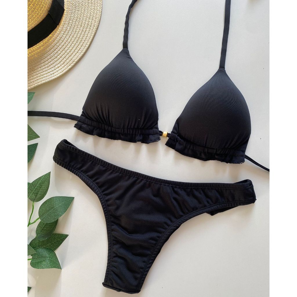 Biquíni Feminino Cortininha com Bojo removível e calcinha modelo fio duplo Moda praia