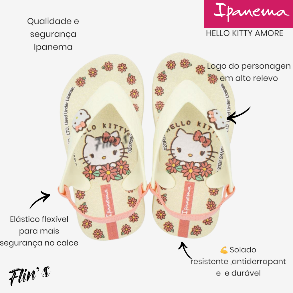 Chinelo Baby Ipanema Hello Kitty Amore | Original | Com Elástico | Menina