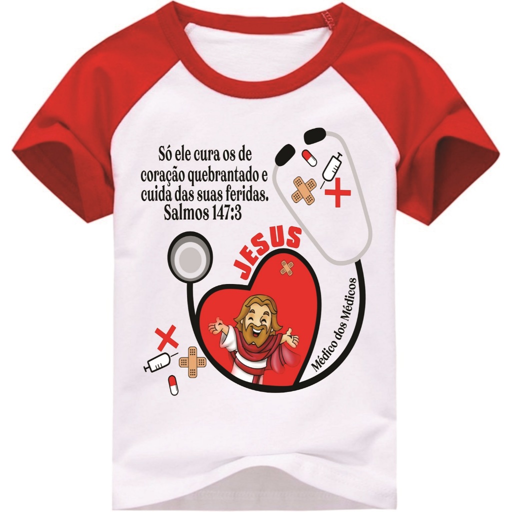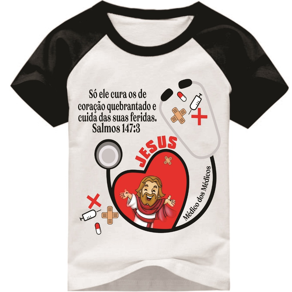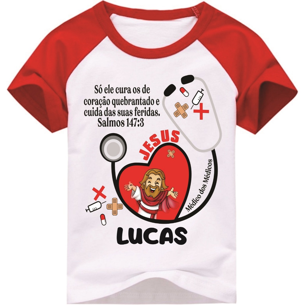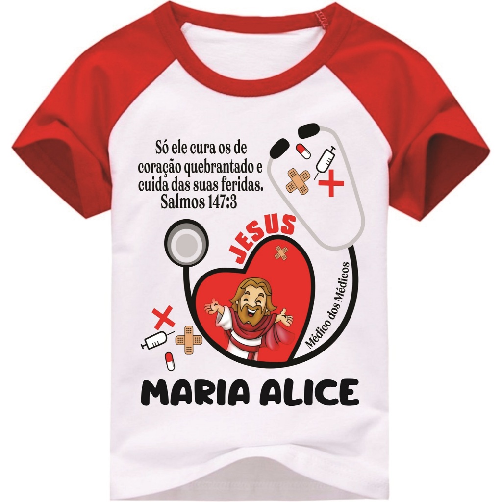 Camiseta Evangélica Jesus Médico dos Médicos, personalizada com nome infantil ou adulto