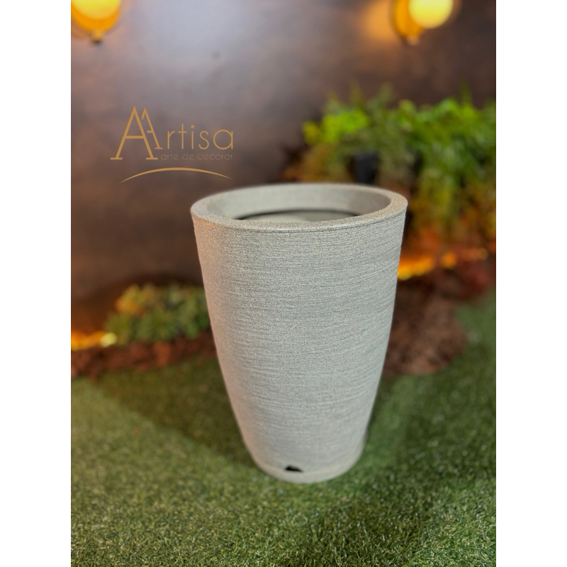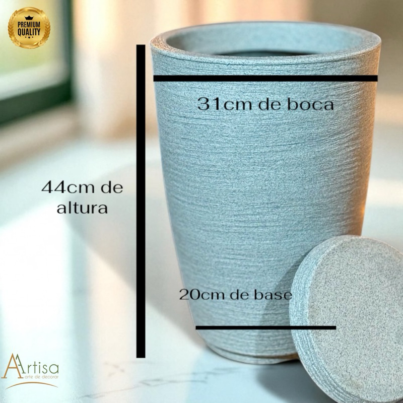 Vaso para decoração e plantas - polietileno redondo escovado n2 com prato