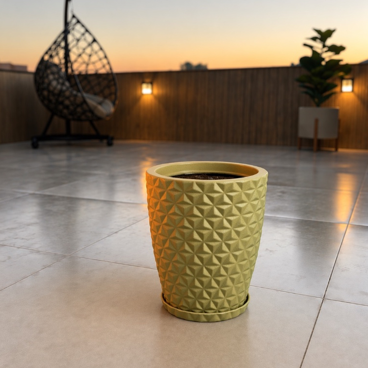 Vaso para decoração e plantas - polietileno diamante P COM PRATO COLETOR