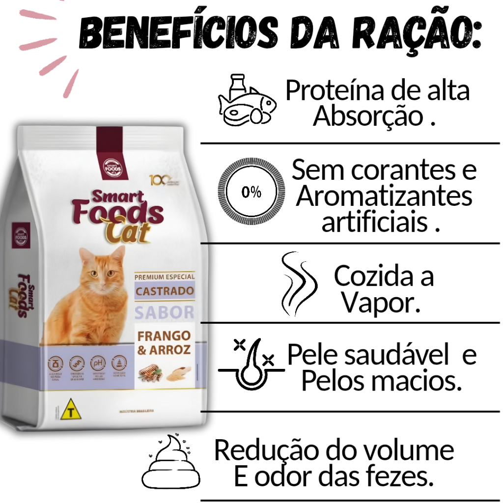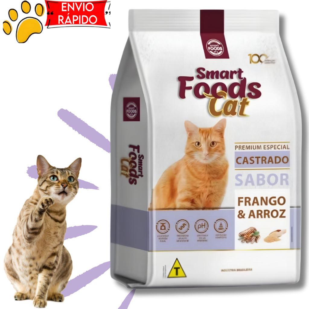 Ração smart foods cat para gatos castrados sabor frango e arroz 10.1kg