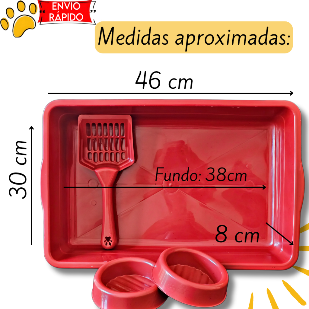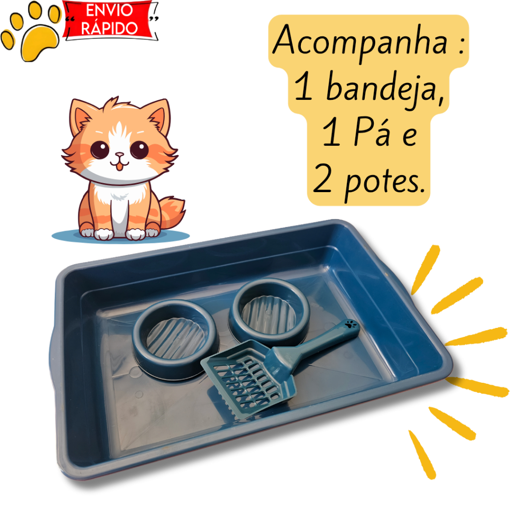 Kit gato com 4 itens , bandeja para gato, pote para gato e Pá higiênica para gato.