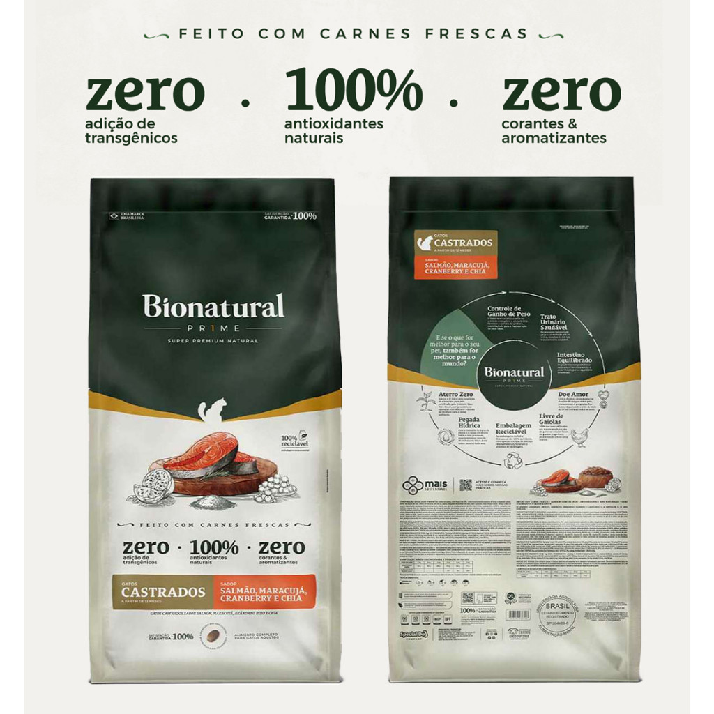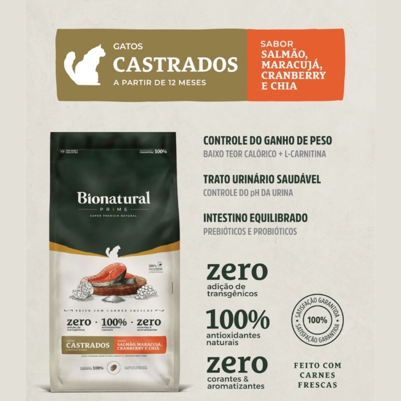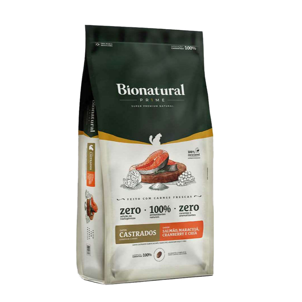 Ração Bionatural Prime para Gatos Castrados sabor Salmão 20 KG