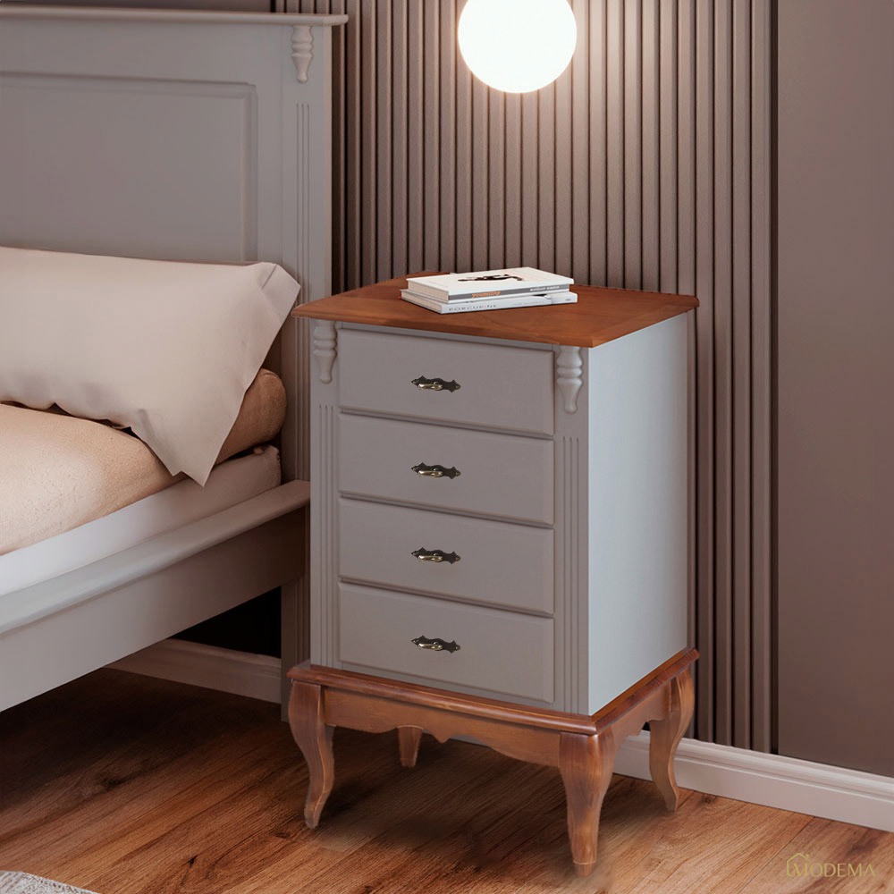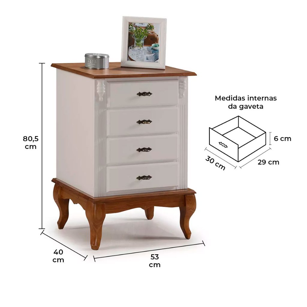 Mesa de Cabeceira 4 Gavetas Pés Luiz XV 60404 Linz Móveis - Off White/Imbuia Glazer