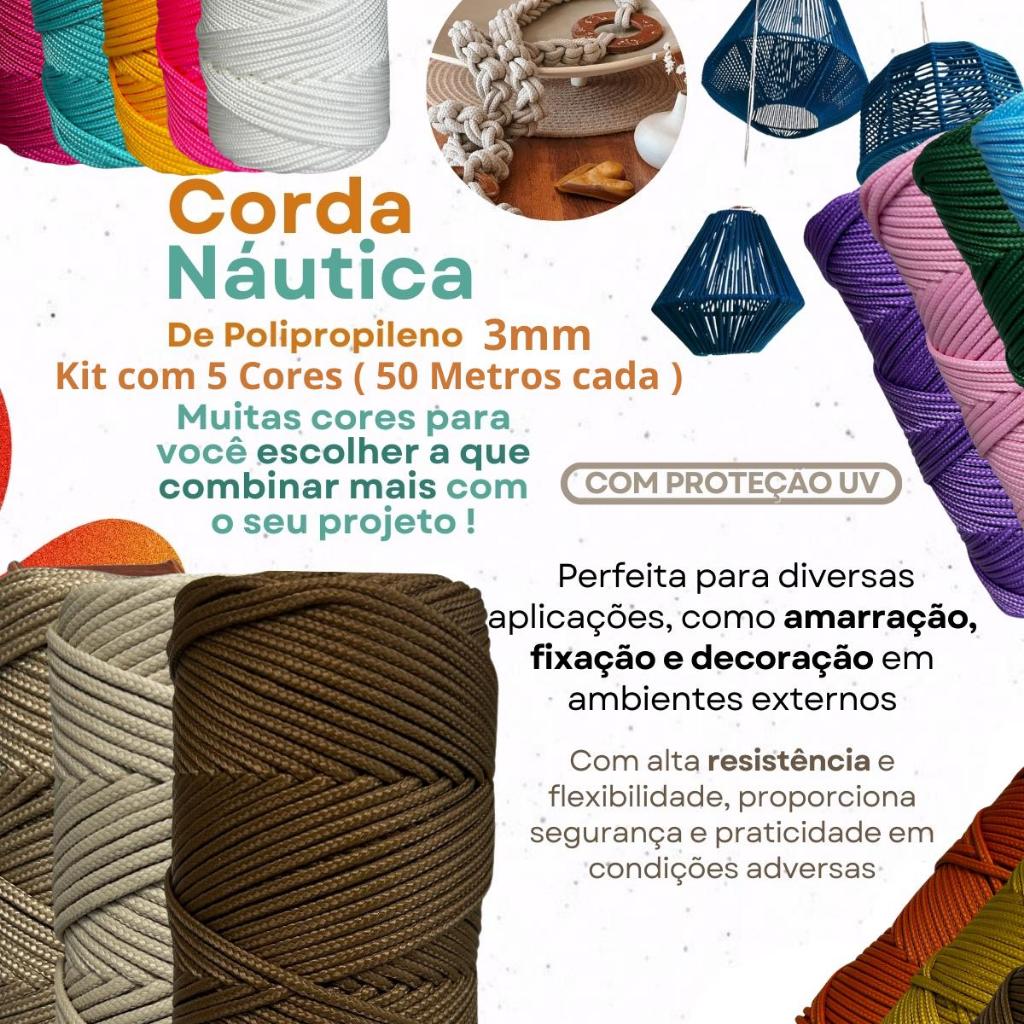 Corda Náutica de Polipropileno 3mm Kit 5 Cores com 50 metros