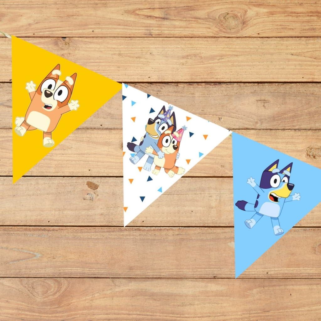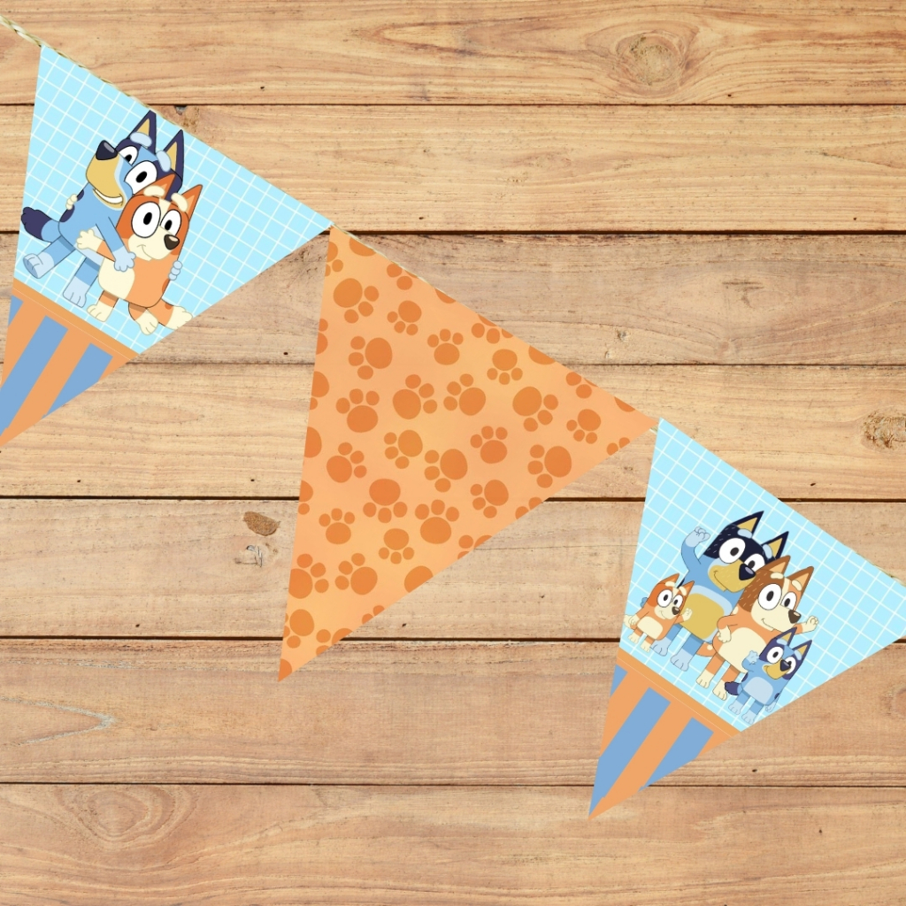 12 Bandeirola para Festas BLUEY E BINGO /BANDEIRAS para Festa de Aniversário - Bandeirinha Mesversário