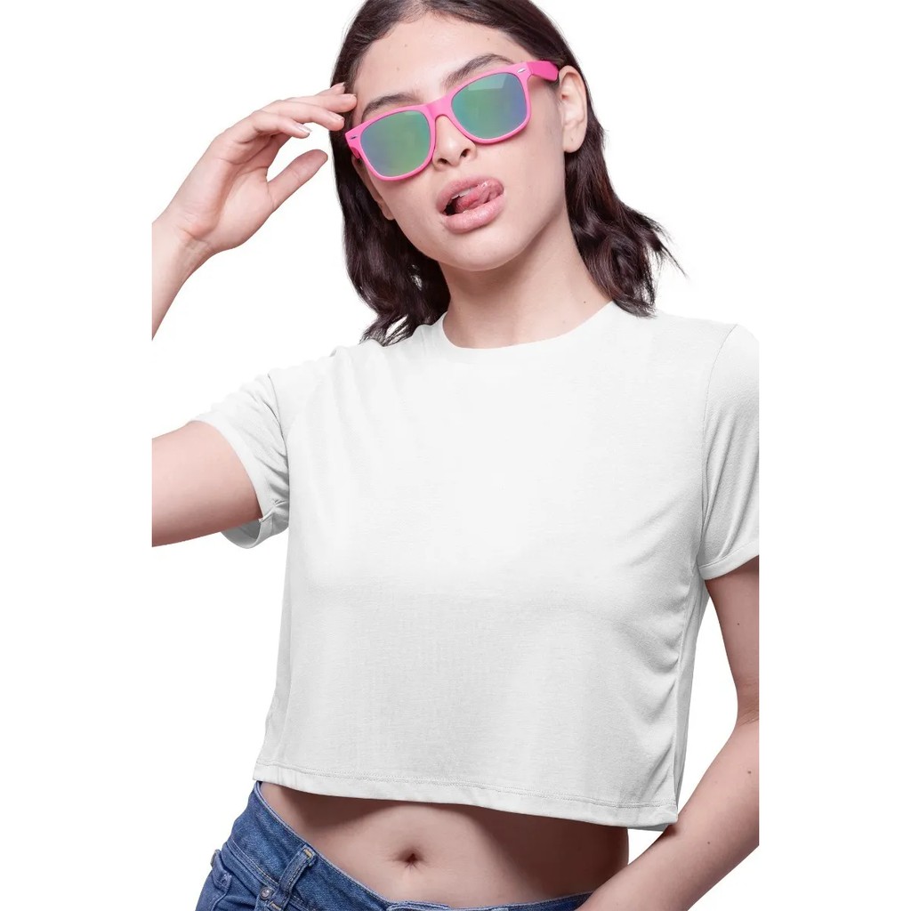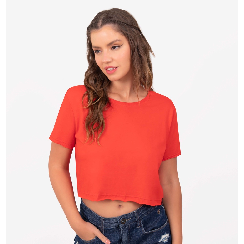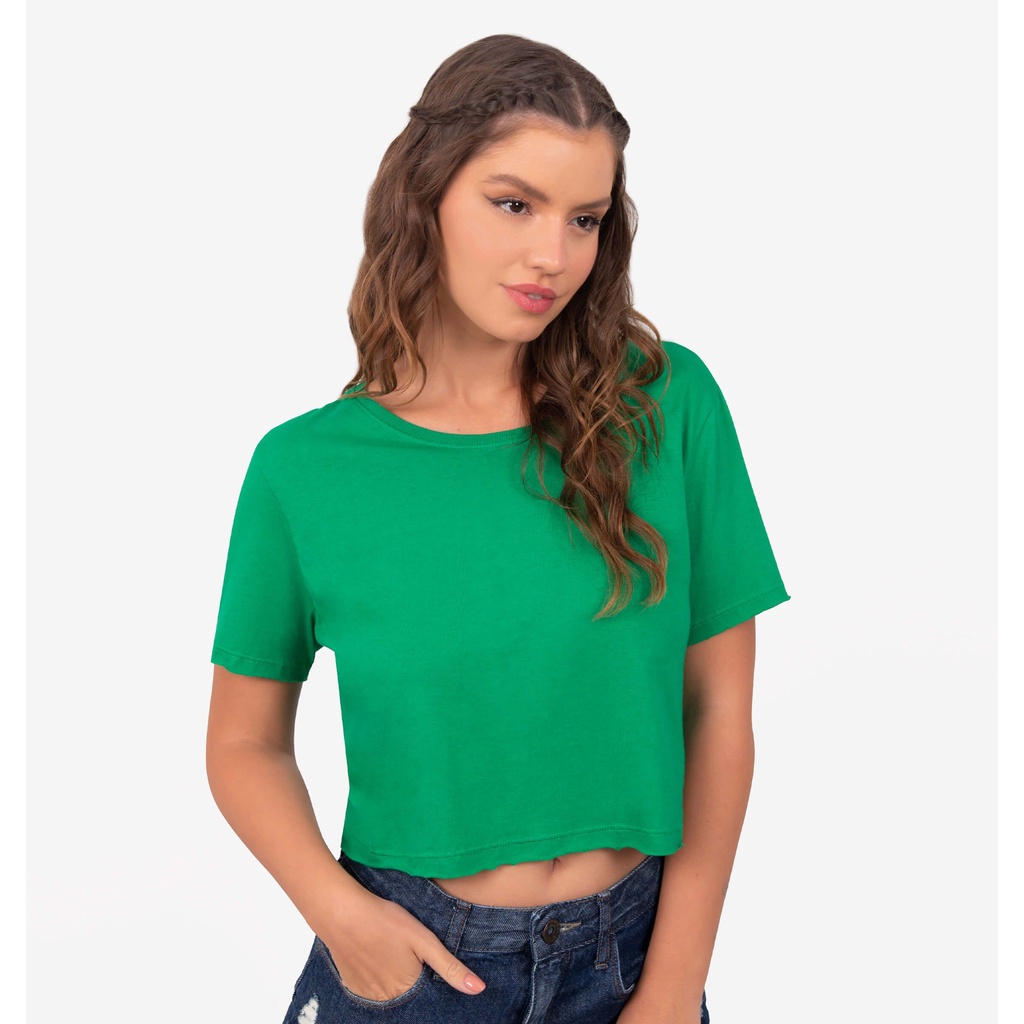 Blusa cropped manga curta tecido 100%algodão fio 30.1 promoção direto de fábrica