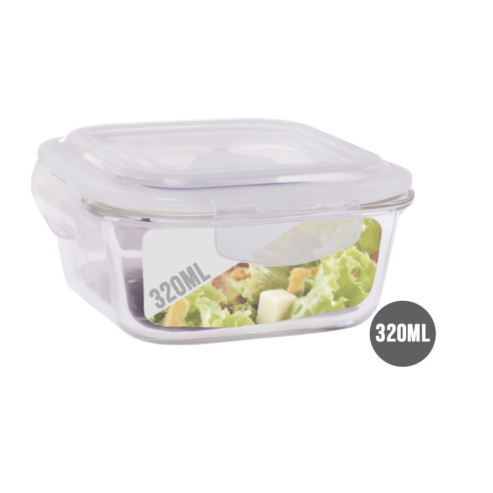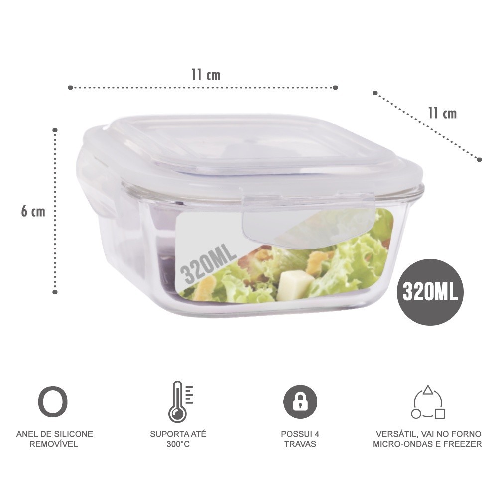 Pote Vidro 320ml 4 Travas Hermética Quadrado Papinha