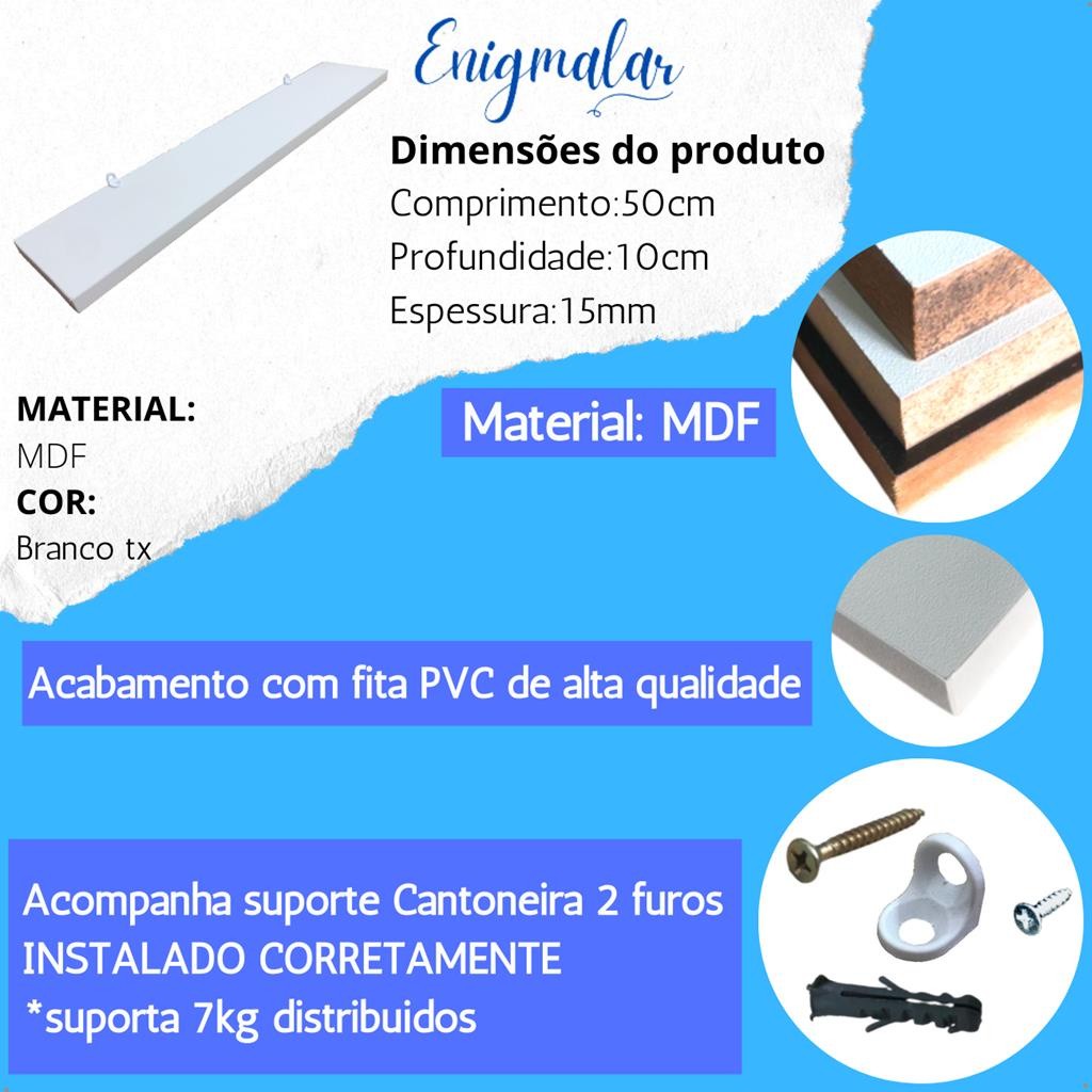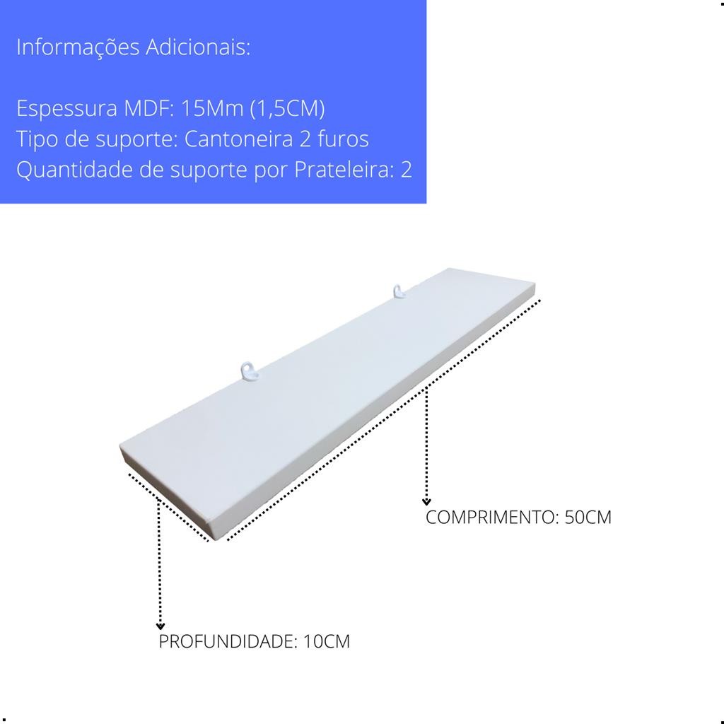 Kit 2 Prateleira Branca 50X10 + Suporte Flutuante Mdf Organizadora Decoração Cozinha Banheiro Sala