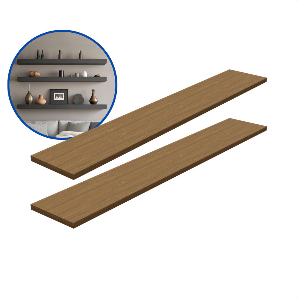 Kit 2 Prateleira Freijó 80X15 + Suporte Flutuante Mdf Organizadora Decoração Cozinha Banheiro Sala